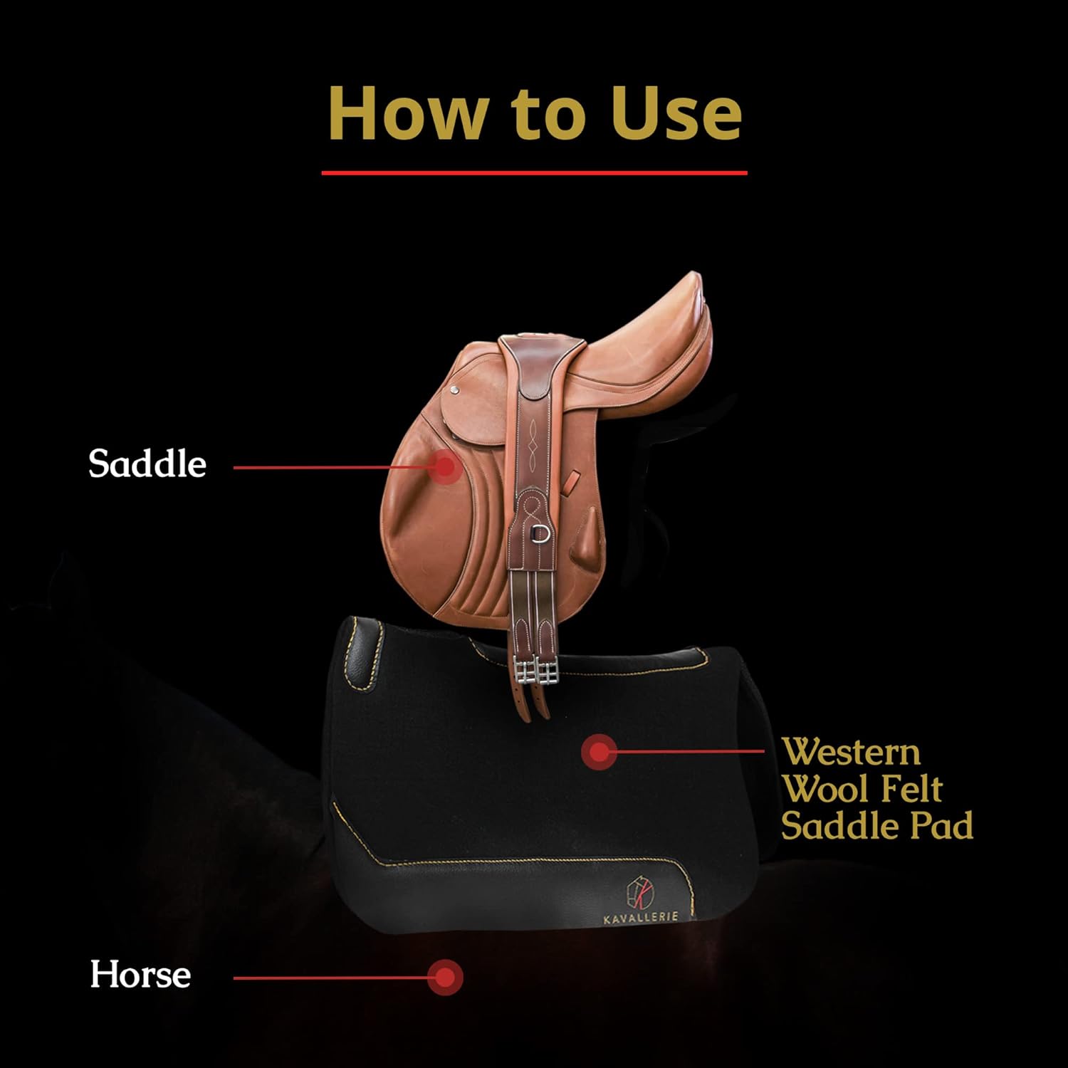 • Made For Comfort And Performance - Rides are smooth with Kavallerie’s contoured Western saddle pad. Moisture-wicking wool felt hugs the shape of your horse’s back without irritation so you’ll achieve the best performance.