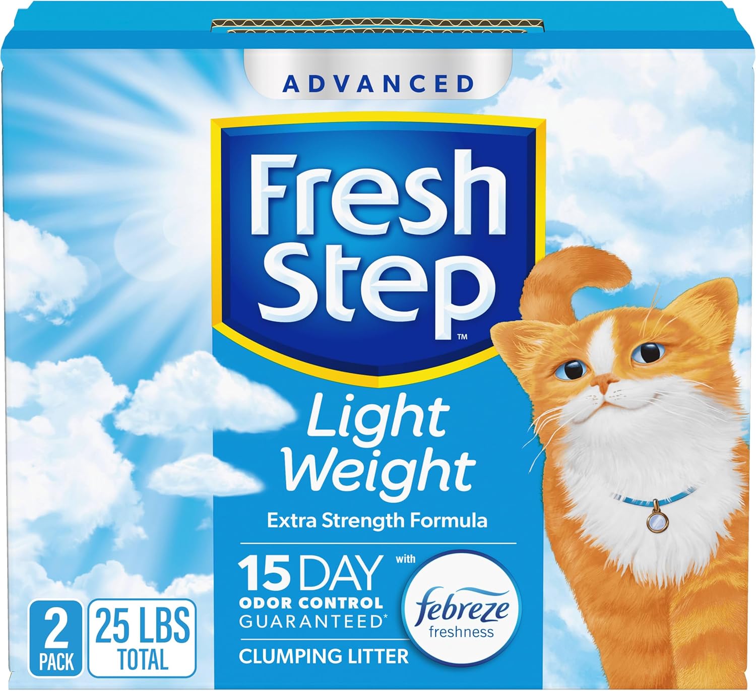 • FRESH STEP LIGHT WEIGHT CAT LITTER: Two 12.5 lb. boxes of Fresh Step Light Weight Advanced Extreme Clumping Litter with Febreze freshness that is 30% lighter for easy handling (1) Certain trademarks used under license from The Procter & Gamble Company or its affiliates
