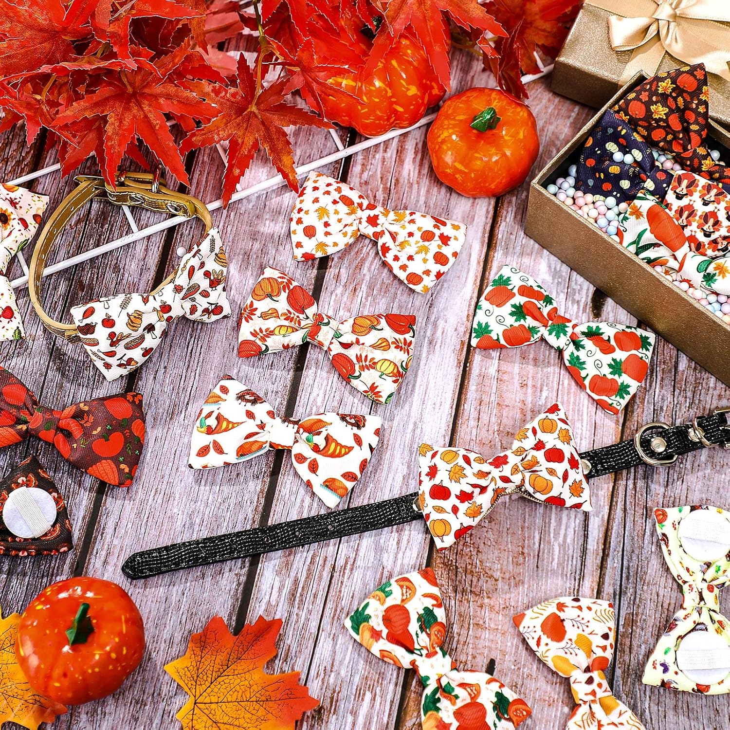 • Thanksgiving Elements: cute pet ties and pet bow ties using Thanksgiving style; Surface printed with pumpkins, hats, food and other patterns, beautiful and generous, the surface is fresh and cute, adding a lot of daily and festival atmosphere