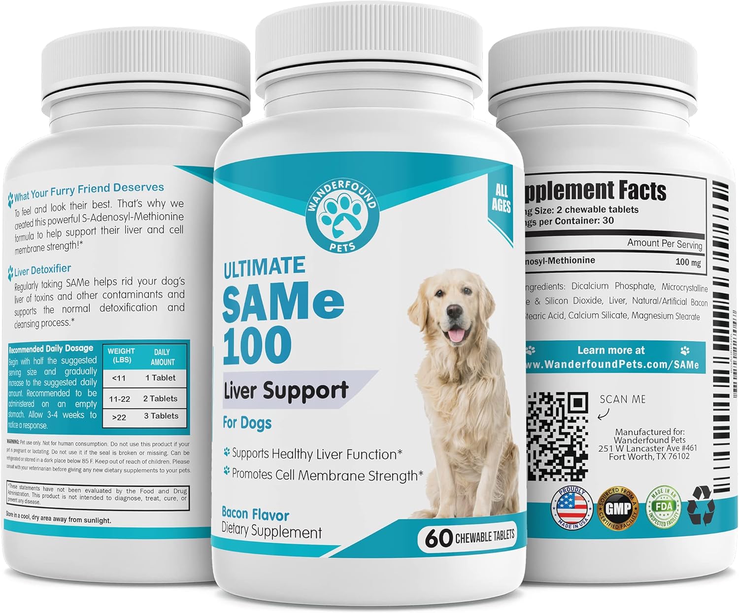 Same 100, Liver Support for Dogs, SAM e Chewable Hepatic Support for Dogs, Promotes Cell Membrane Strength, Bacon Flavor (60 Count)