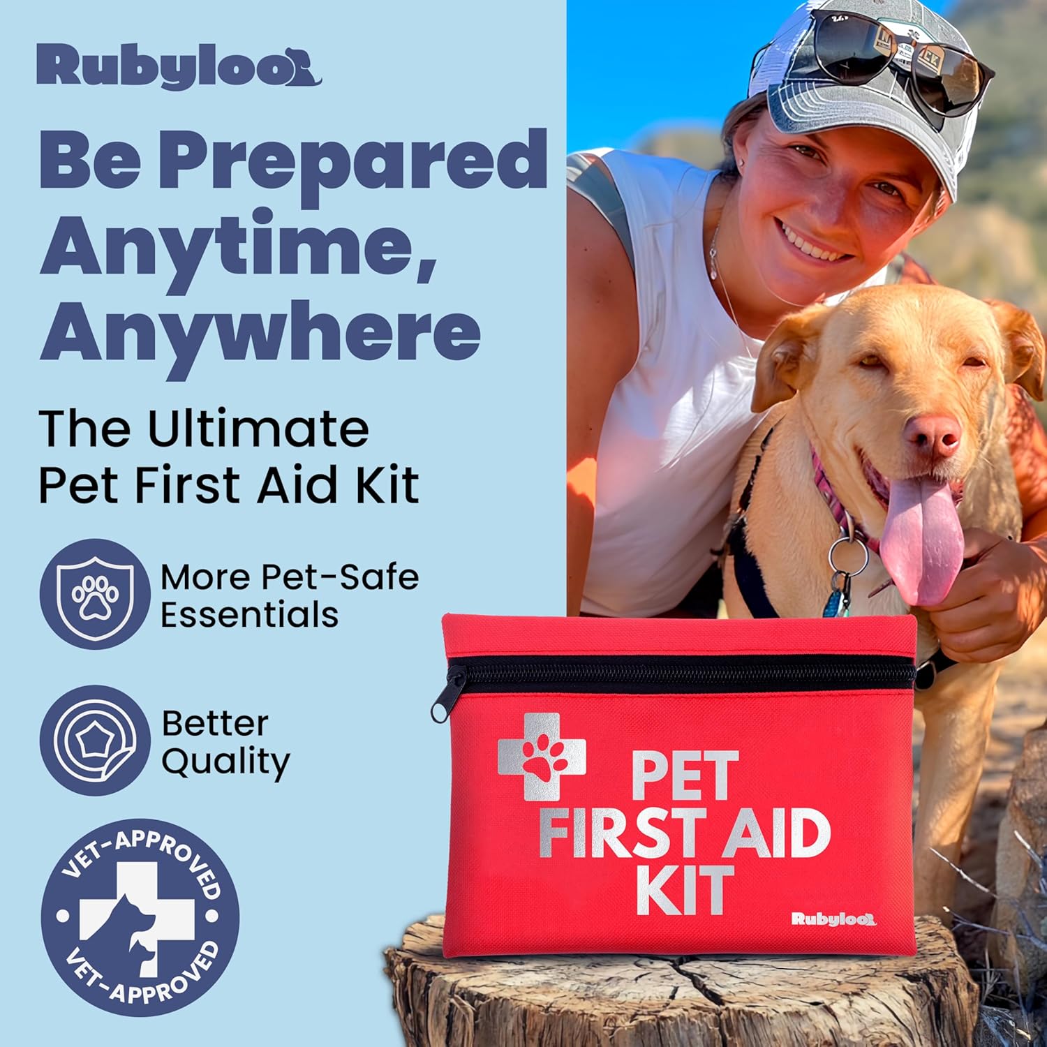 Dog First Aid Kit for Hiking & Travel - Vet Approved Emergency Supplies - Pet First Aid Kit Guide, Tick Remover, Thermal Blanket & More - Compact Dog Hiking Gear for Camping, Hunting, Backpacking