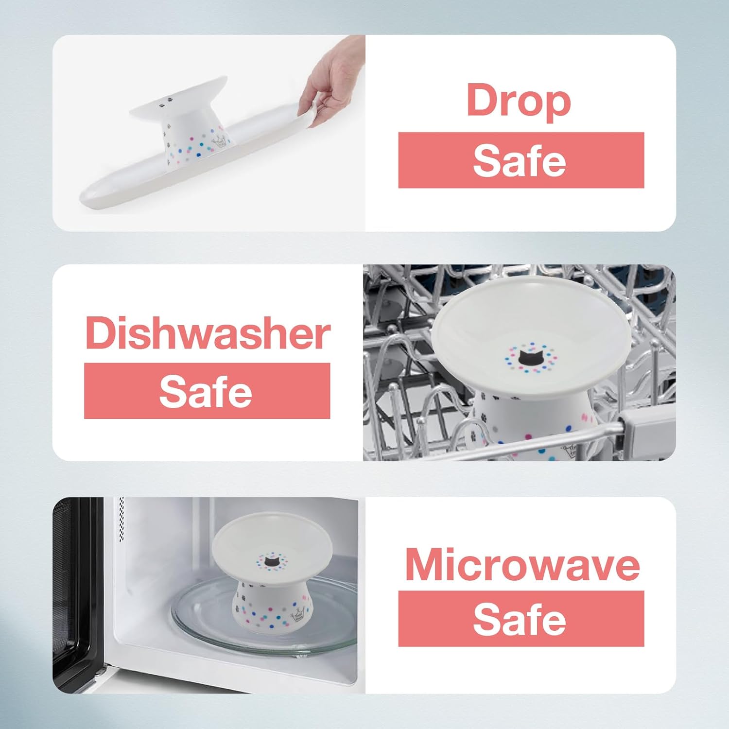• Safe, Durable & Easy to Clean: Made from high-quality porcelain, free from lead and cadmium; meets strict US, EU and Japanese safety standards; microwave and dishwasher-safe porcelain ceramic cat bowl.