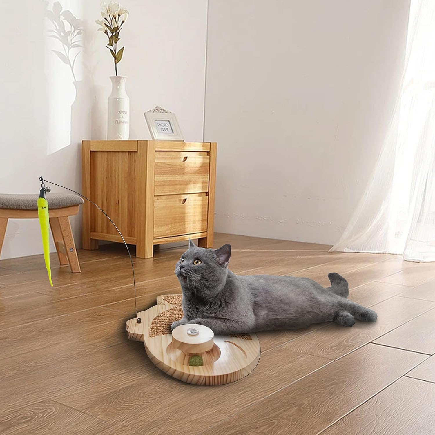 • Non-toxic & Safe & Durable – Fish shape design, the body is made of natural woven sisal and pine which is more durable and wear-resistant than corrugated board. The cat toy roller made by pine and catnip balls. Is environmentally and cat-friendly.