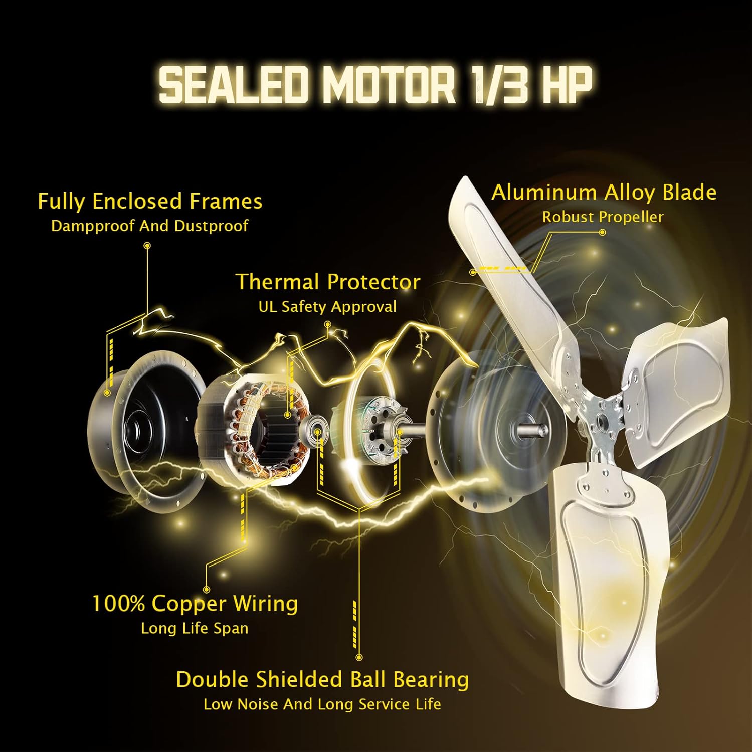 - 【Moves Much Air】: Built with 1/3HP Premium TEAO Enclosed Motor and Shielded Ball Bearings, this heavy duty industrial wall fan provides circulating breeze for large spaces, blowing distance reach 60 feet. It is ideal for Warehouse, Workshop, Factory, Garage, Basement, Greenhouse, Barn, Industrial, Commercial and Residential areas. High speed 9100 CFM / Low speed 7300 CFM