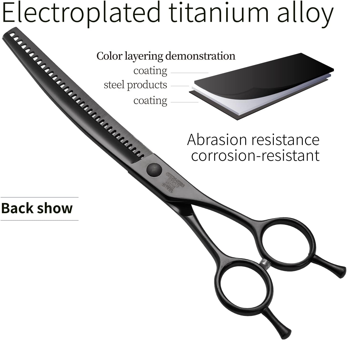 Fenice Peak Professional Dog Grooming Scissors Pet Curved Chunker Shears 7.0'' Extremely Sharp Blades 440C Steel Thinning Scissors Durable Smooth Motion & Fine Cut for Dogs and Cats(Black)