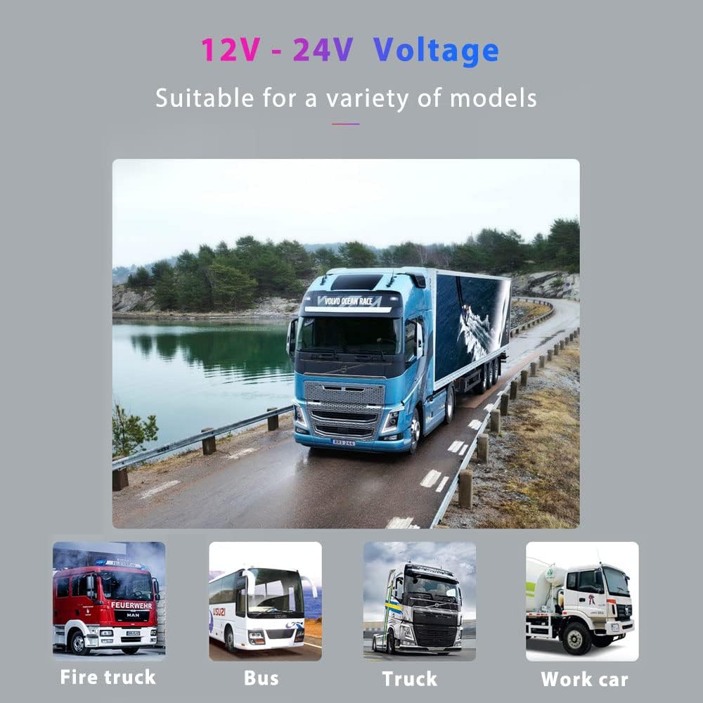 • 【Wide Comatability】Voltage Range From 12-24V DC Power to Accomodate a Wide Variety of Large Vehicle as Truck, Bus, RV, Tractor, Car and ect