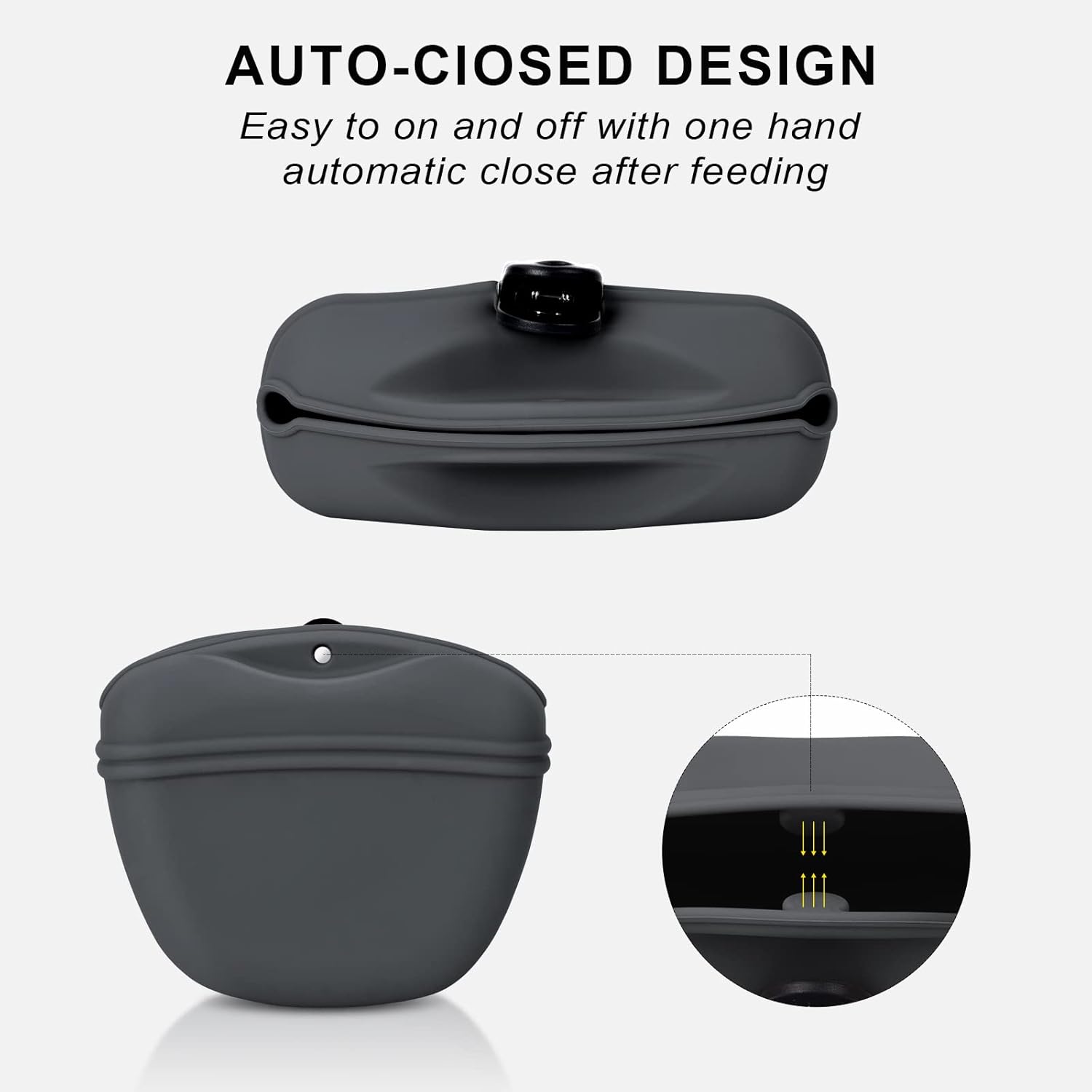 • 🐕Silicone Dog Treat Pouch🐕 - The silicone dog treat pouch is made of food grade silicone,it can contact dry and wet food directly,safe and healthy. It’s easy to on and off with one hand, automatic close after feeding.With upgrated clip,It is easy to carry,not easy to fall off.Dish washer safe and easy to clean,The large opening design and soft silicone material make the pet pouch easy to reverse to clean the inner easily and thoroughly.