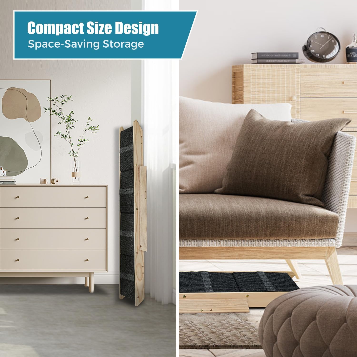 • SOFT SURFACE: Each of the steps of the pet stairs is covered with a soft carpet fabric to prevent your furry friends' paw pads from injury and avoid slipping in ramp mode.