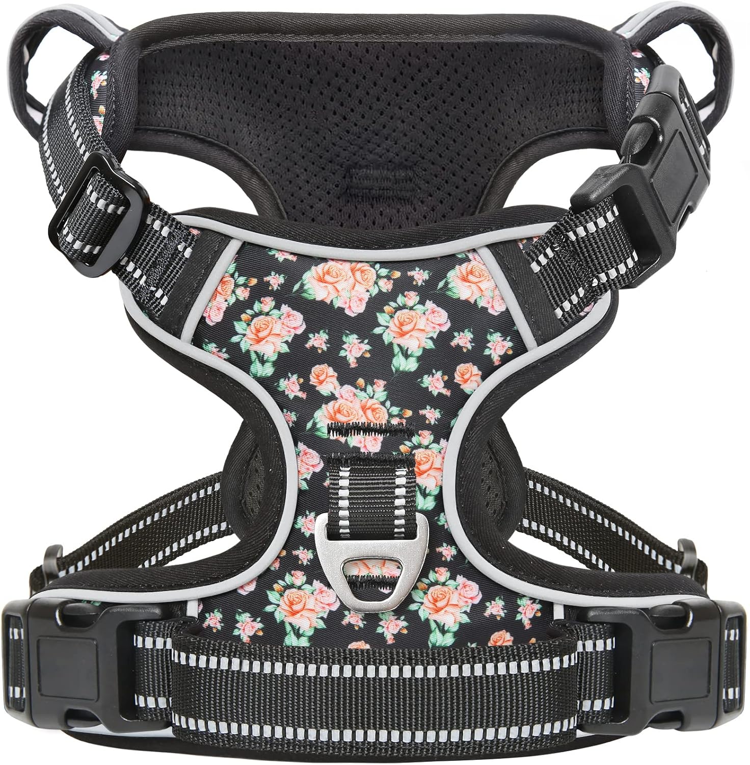 Timos Dog Harness, NO Need Go Over Dogs Head 3 Snap Buckles with 2 Leash Clips, Adjustable Soft Padded No-Pull Dog Harness, Reflective No-Choke Pet Oxford Vest for Small Medium Large Dogs