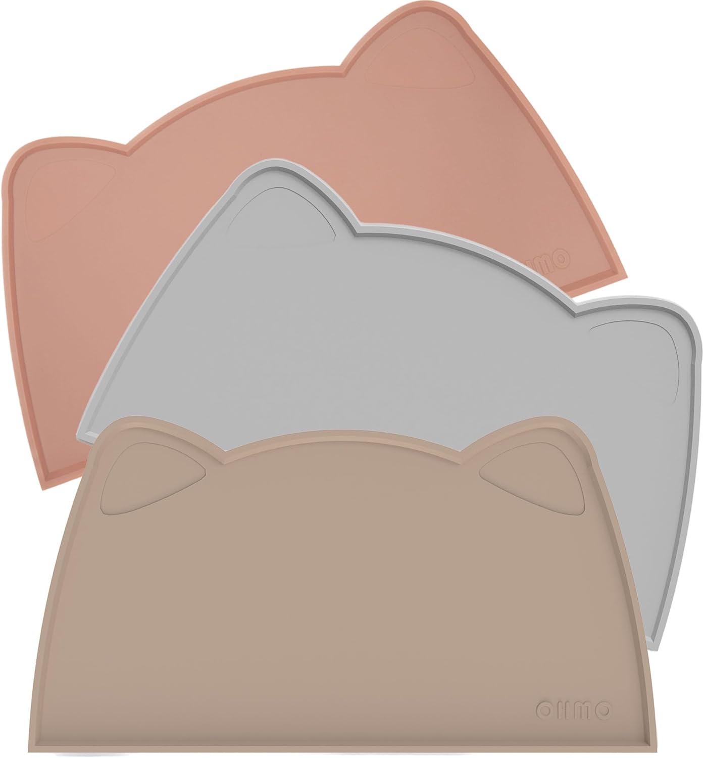 OHMO - Cat Food Mat, Silicone Pet Feeding Mat for Floor Non-Skid Waterproof Dog Water Bowl Tray, Easy to Clean Pet Placemat (Beige, 18 * 9.8'')