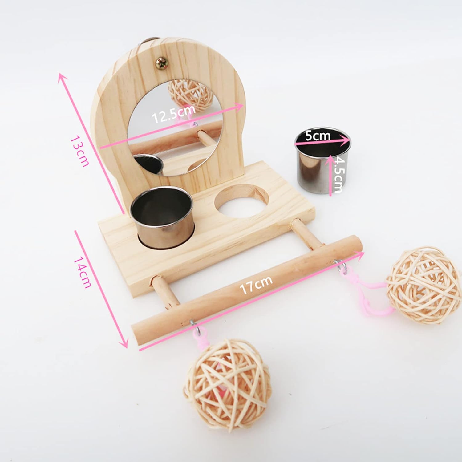 Bird Mirror for Cage, with2 Pcs Stainless Steel Bird Feeding & Watering Cup, Bird Perch and Bird Training Toys Small Rattan Balls for Budgies, Parakeets, Lovebirds and Finch Canaries Cage