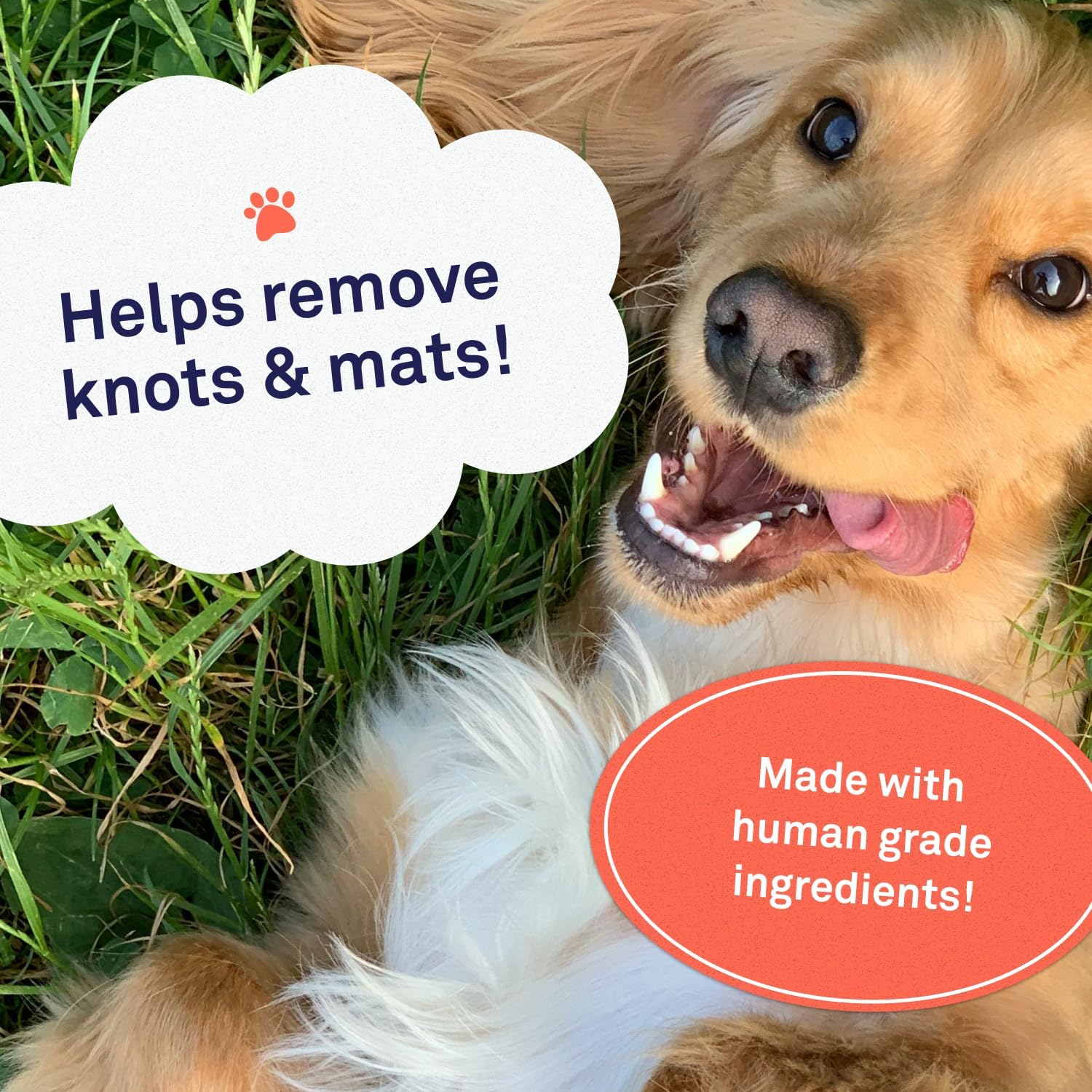• TANGLE FREE COAT IN MINUTES! This dog hair detangler lubricates and strengthens fur while you brush so you can easily remove knots, tangles, and mats. Put those scissors away!
