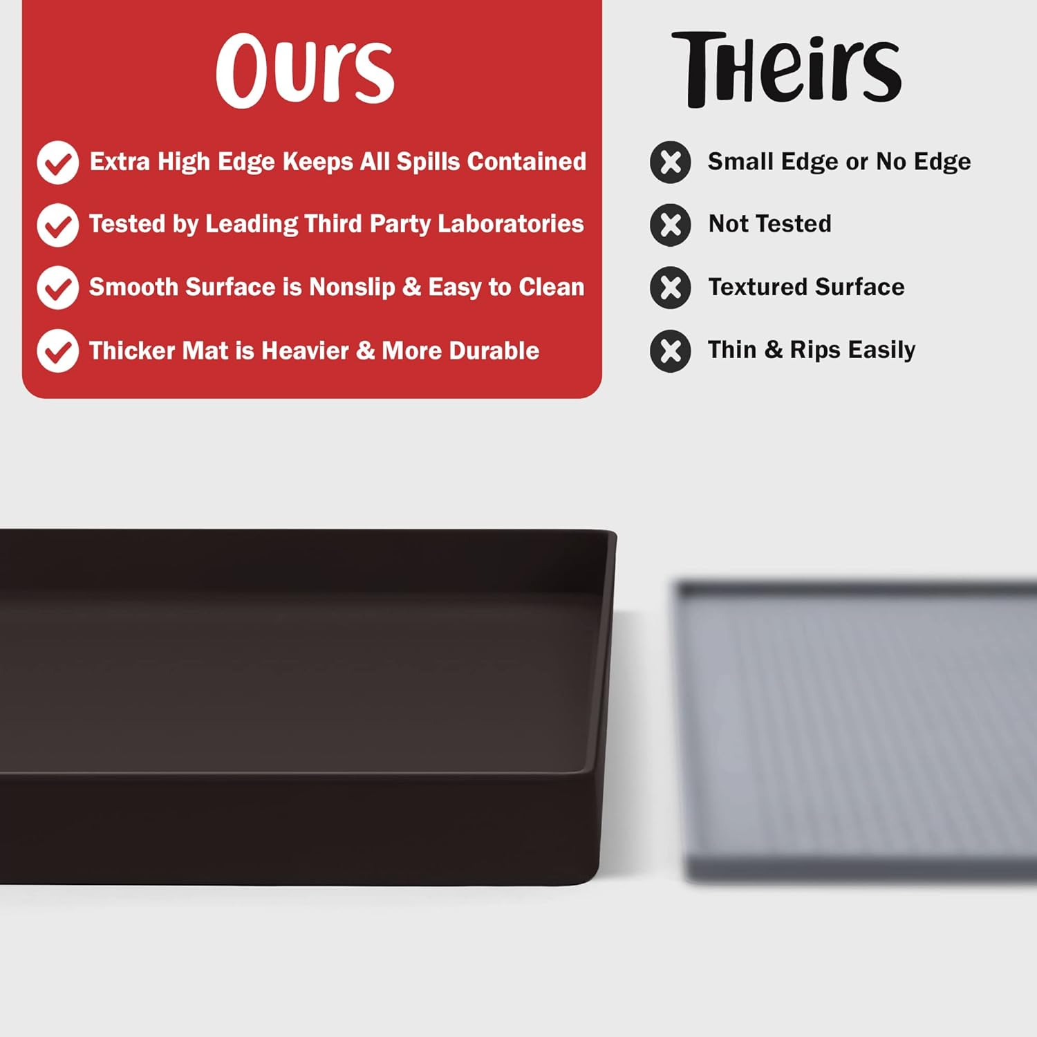• Less Mess & Less Stress: Super high edge (0.6”) of DogBuddy Dog Food Mat keeps the spilled food and water on the mat and away from your beautiful floor. Silicone is naturally 100% waterproof, so what happens on the mat stays on the mat.