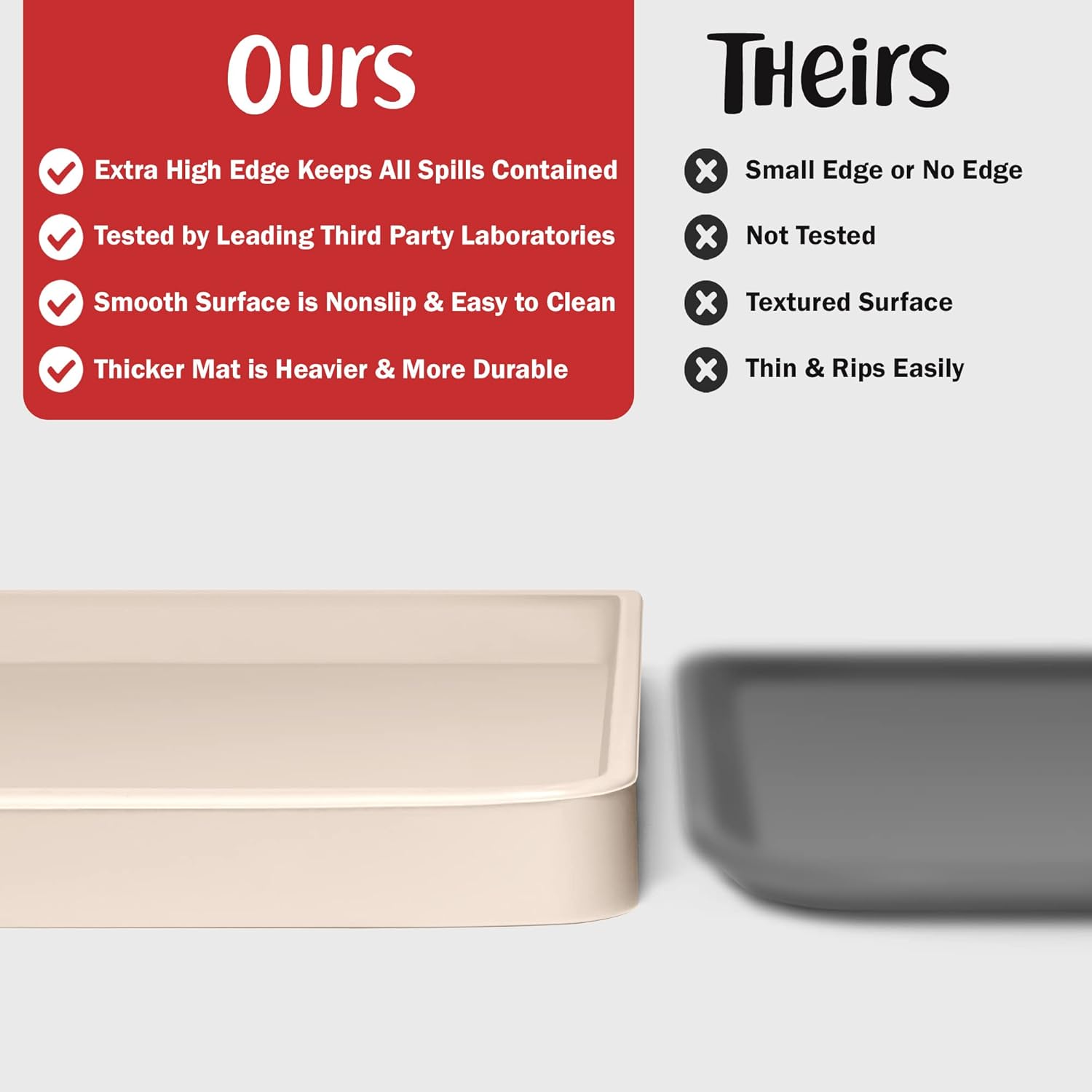 • Less Mess & Less Stress: Super high edge (0.6”) of DogBuddy Dog Food Mat keeps the spilled food and water on the mat and away from your beautiful floor. Silicone is naturally 100% waterproof, so what happens on the mat stays on the mat.