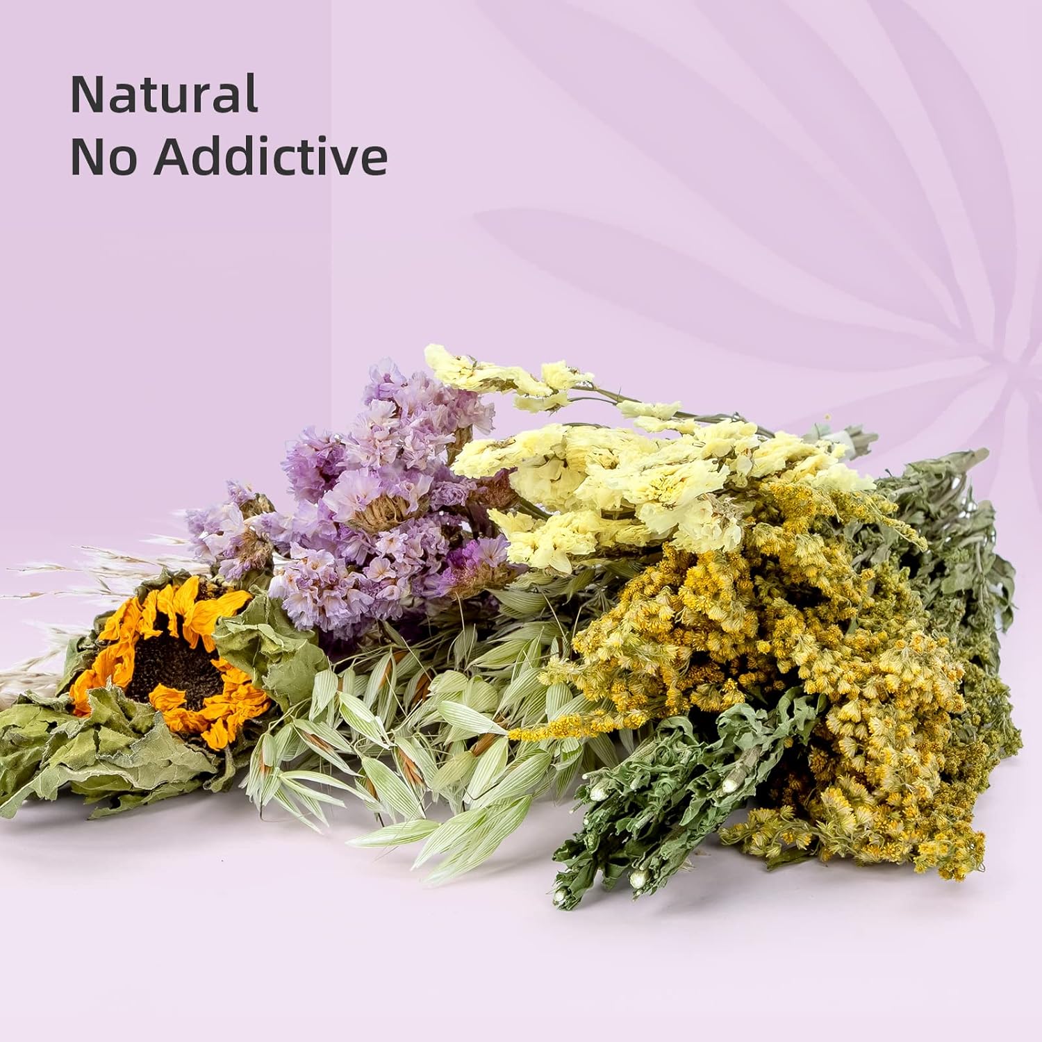 - Safe Materials & More Experience: Capacity: 3.5 OZ(ca. 100g). We are always want to find safe and happy stuff for our pets, these dry varieties have been repeatedly researched by pet experts to pick out the safe flowers that children love, such as purple Myosotis, Reed, Sunflower, wild Oat and etc. Not only can decorate your hamster's home, but also provide more different textures to enrich their chewing experience and be a new hamster toy.