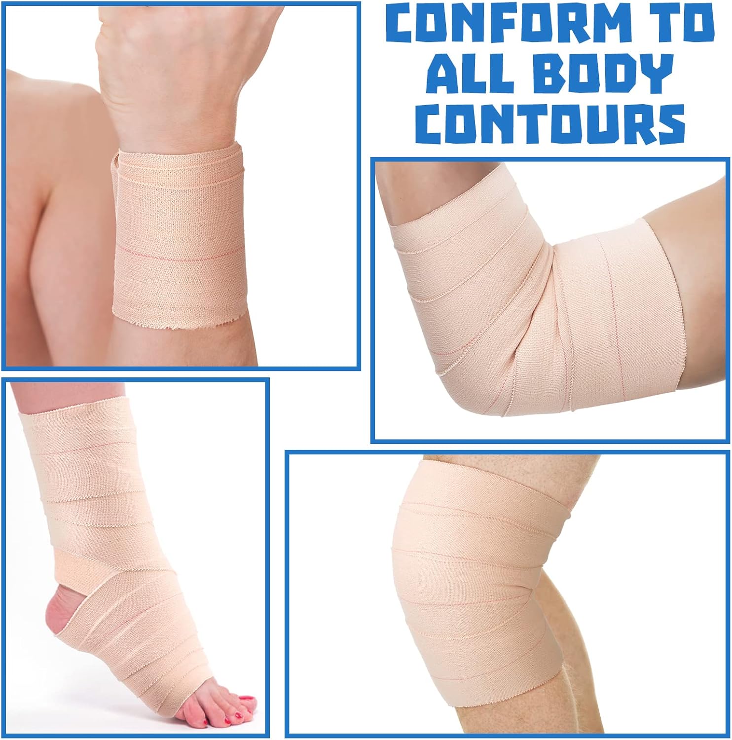 • Comfortable and Flexible: elastic adhesive bandage tape is ideal for where elastic pressure dressings are needed, or can be applied for strapping support, fractures, muscle injuries, knees, elbows and shoulders; This is a porous, self adhesive, elastic tape that allows the skin to breathe, ideal for use both indoors and outdoors
