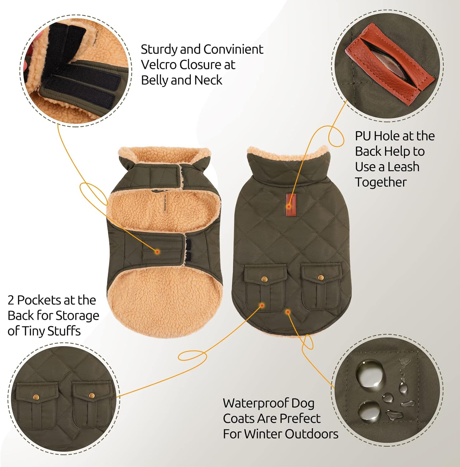 • WINDPROOF COAT WITH STYLISH TURN-DOWN COLLAR - The heavy-lining dog jacket can resistant the chilly wind effectively with the collar up. But the dog jacket creates a different looking with the collar down exposing the beige thick short plush lining.