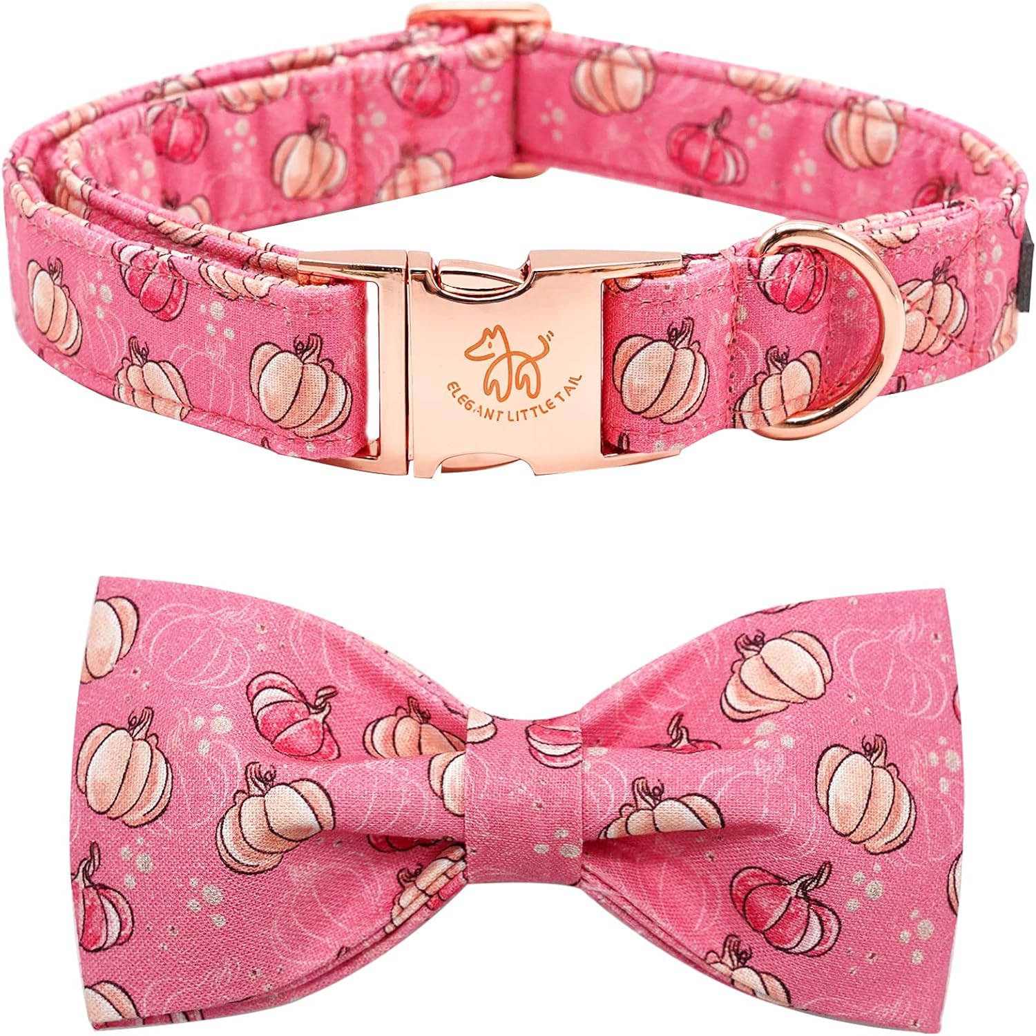 Elegant Little Tail Dog Collar with Bow, Adjustable Halloween Pumpkin Bowtie Pet Gift Collar for Small to Large Dogs