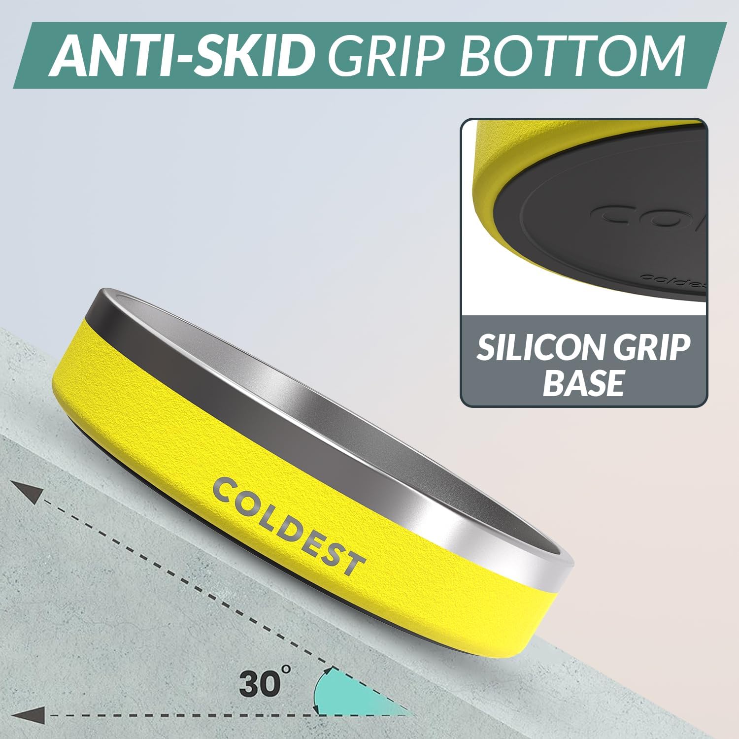 Coldest Dog Bowl - Anti Rust Metal, Non Slip, 3 Layers Insulated Stainless Steel Dog Bowls - Spill Proof & Heavy Duty - Water Bowl for Dogs, Cats & Pets, Dish Washer Safe (21 oz, Solar Yellow)