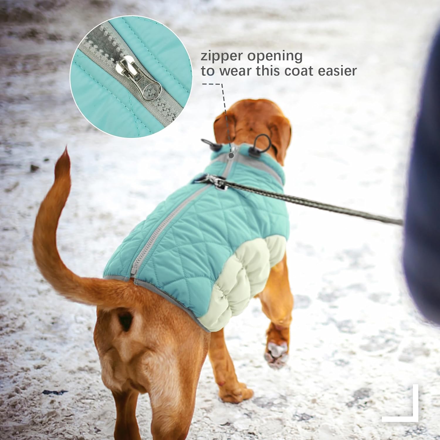 FUAMEY Dog Coat for Large Dogs,Waterproof Dog Winter Jacket with Harness Built in Puppy Cold Weather Coats Reflective Pet Vest with Zipper Warm Fleece Dogs Snowsuit Windproof Mint Green XXXL