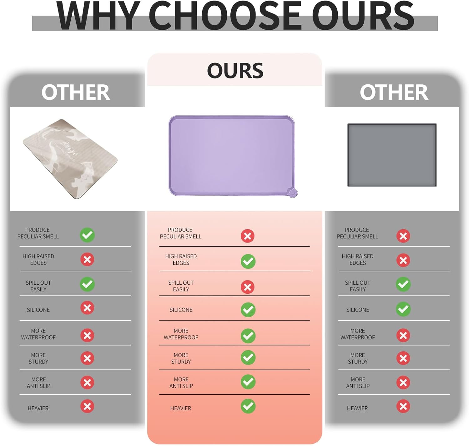 • High-raised edges: say goodbye to messy floors with our mats' high-raised edges that protect your floors from spills and splashes. Keep food and water contained and your floors mess-free