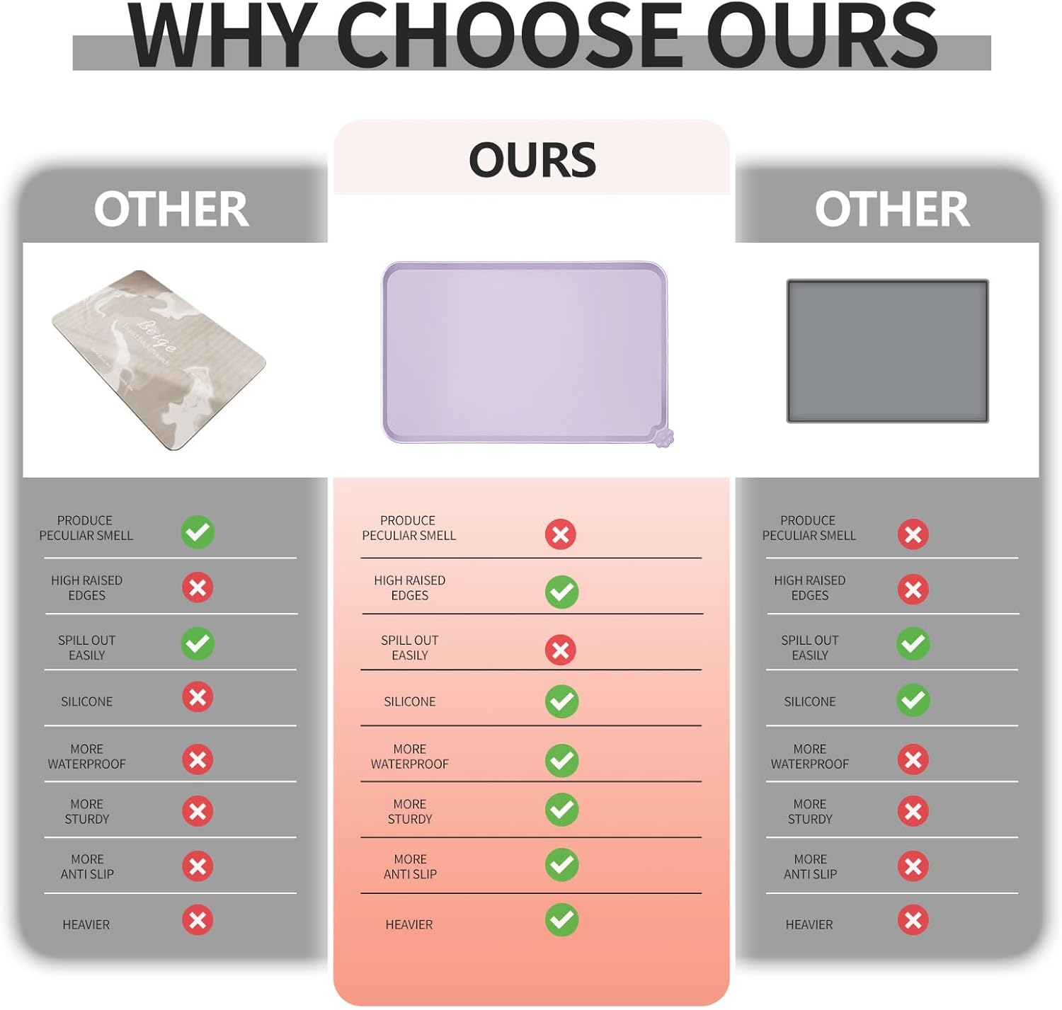 • Anti-slip design: our non-slip pet feeding mat ensures stability for your pet's bowl, preventing any water stains or spills on the floor. Enjoy peace of mind when feeding your pet, knowing that their food stays in place