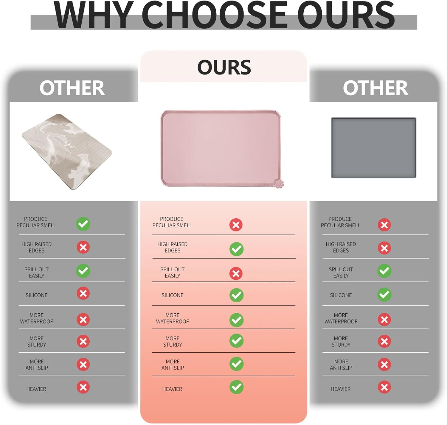 • Anti-slip design: our non-slip pet feeding mat ensures stability for your pet's bowl, preventing any water stains or spills on the floor. Enjoy peace of mind when feeding your pet, knowing that their food stays in place