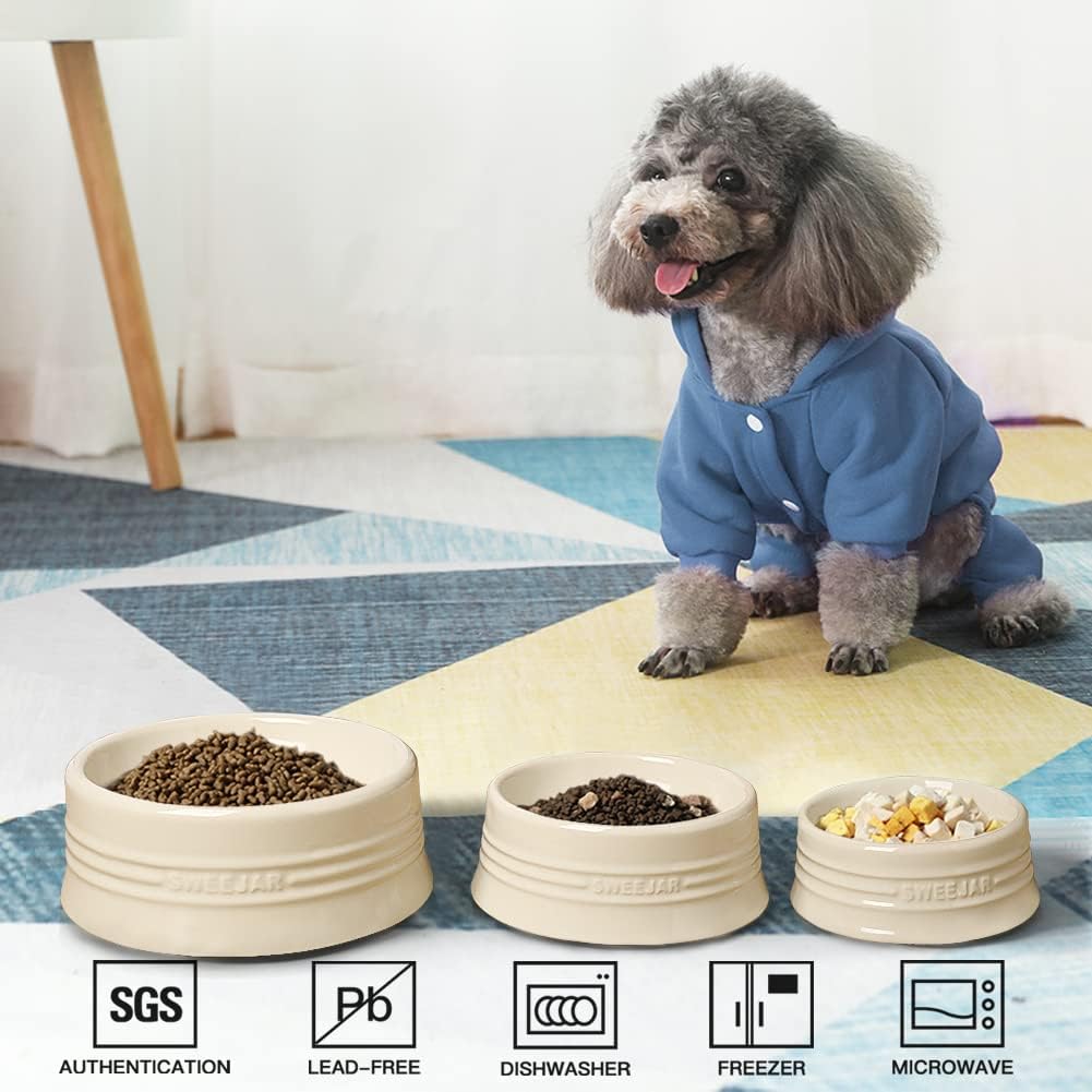 • Non Skidding - SWEEJAR dog bowls are made of food grade porcelain, microwave & dishwasher safe, easy to clean. The ceramic is heavy to help keep the bowl upright when dog eat food. No messy floors to clean.