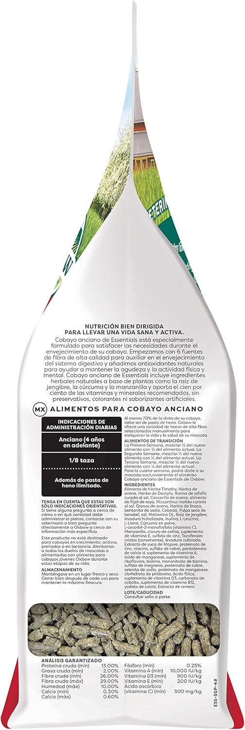 Oxbow Essentials Guinea Pig Food, Senior, Made Alfalfa for Guinea Pig, Pet Food Pellets with Vitamin C, Small Animal Pet Products, Made in USA, High Fiber, 4 lb. Bag