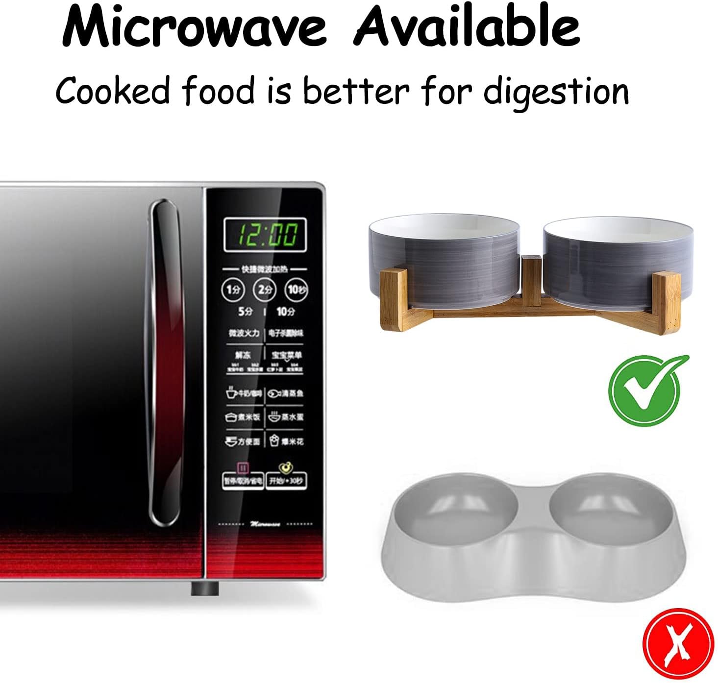 • Double Bowl Design:One dog bowl for food and one for water, Each ceramic cat bowl has a Unique wooden stand, raising the dishes closer to your pet for more comfortable eating