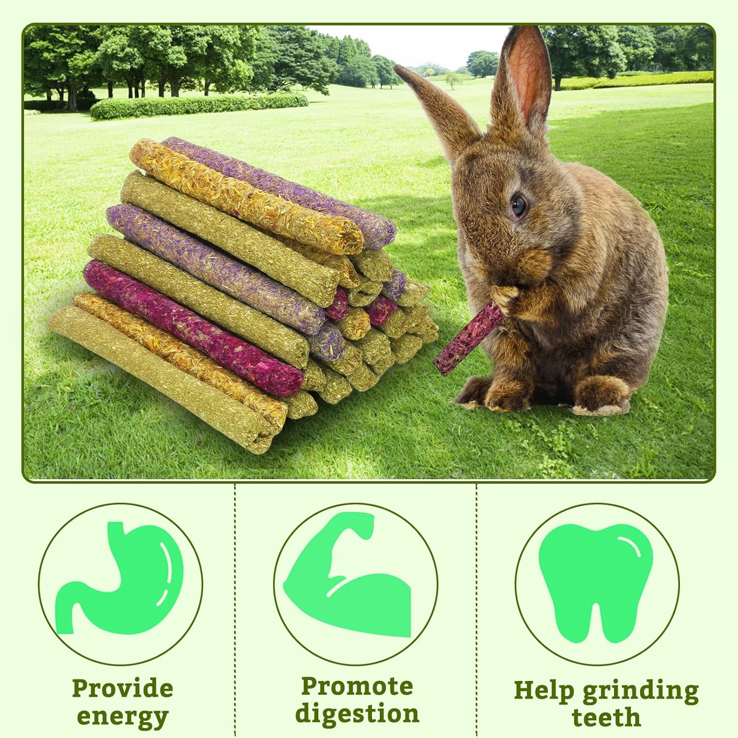 • 🐰 [Variety Of Taste]: Package contains 50 pcs timothy grass sticks, 18 pcs mixed petal grass sticks, a total of 68 PCS delicious small pet snacks, enough quantities to let your furry friends enjoy the joy of chewing!