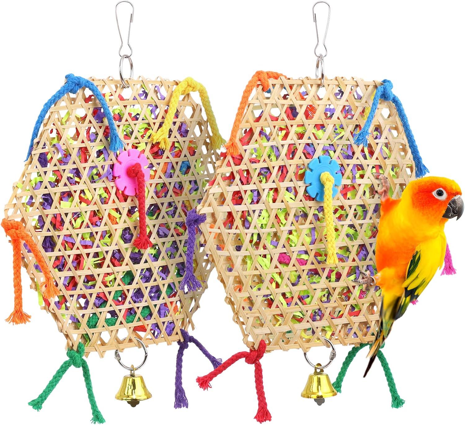 Bird Parrot Toys,2 Pack Bird Hanging Foraging Shredder Toys for Small Medium Small Bird Conure Cockatiel Parrotlet Lovebird Budgie