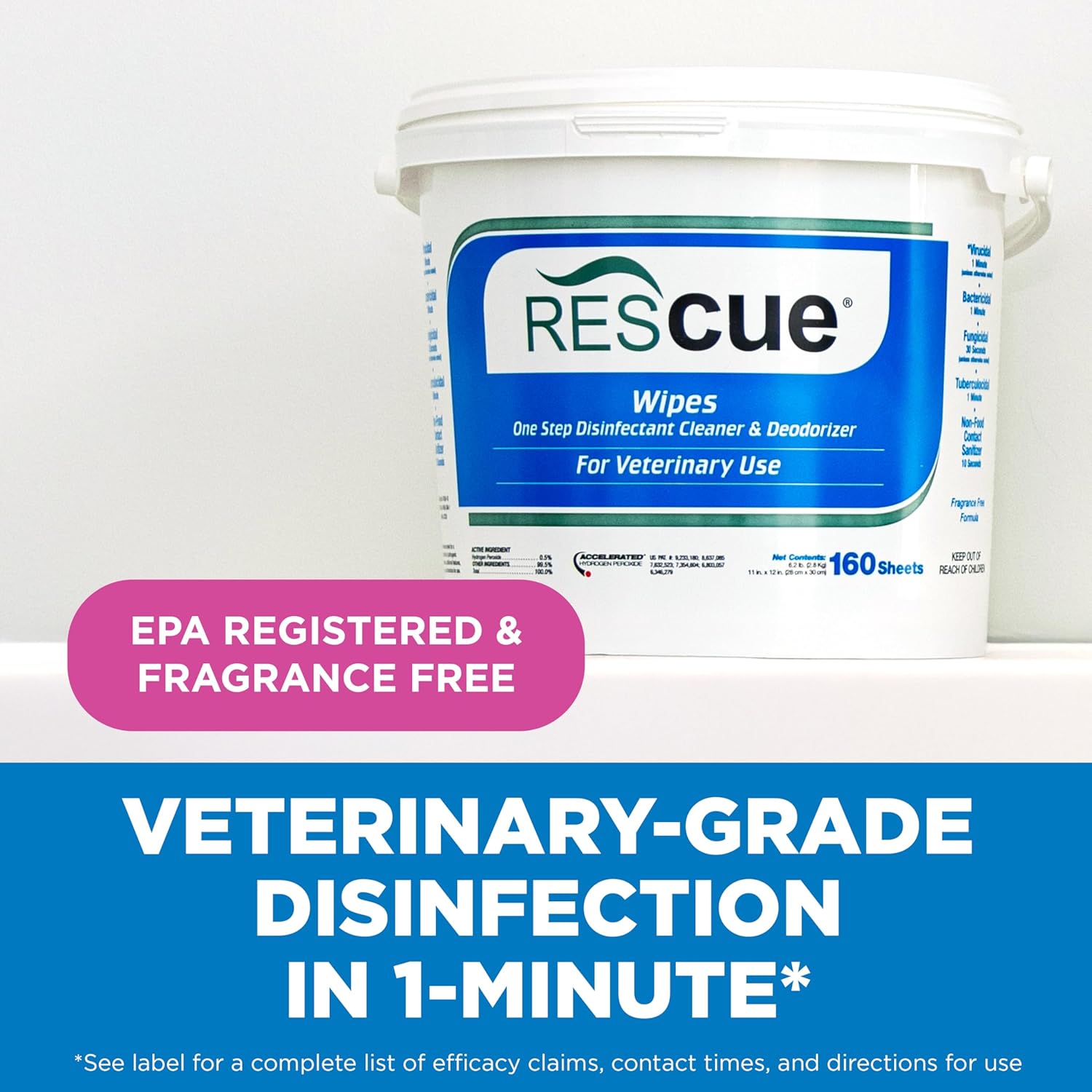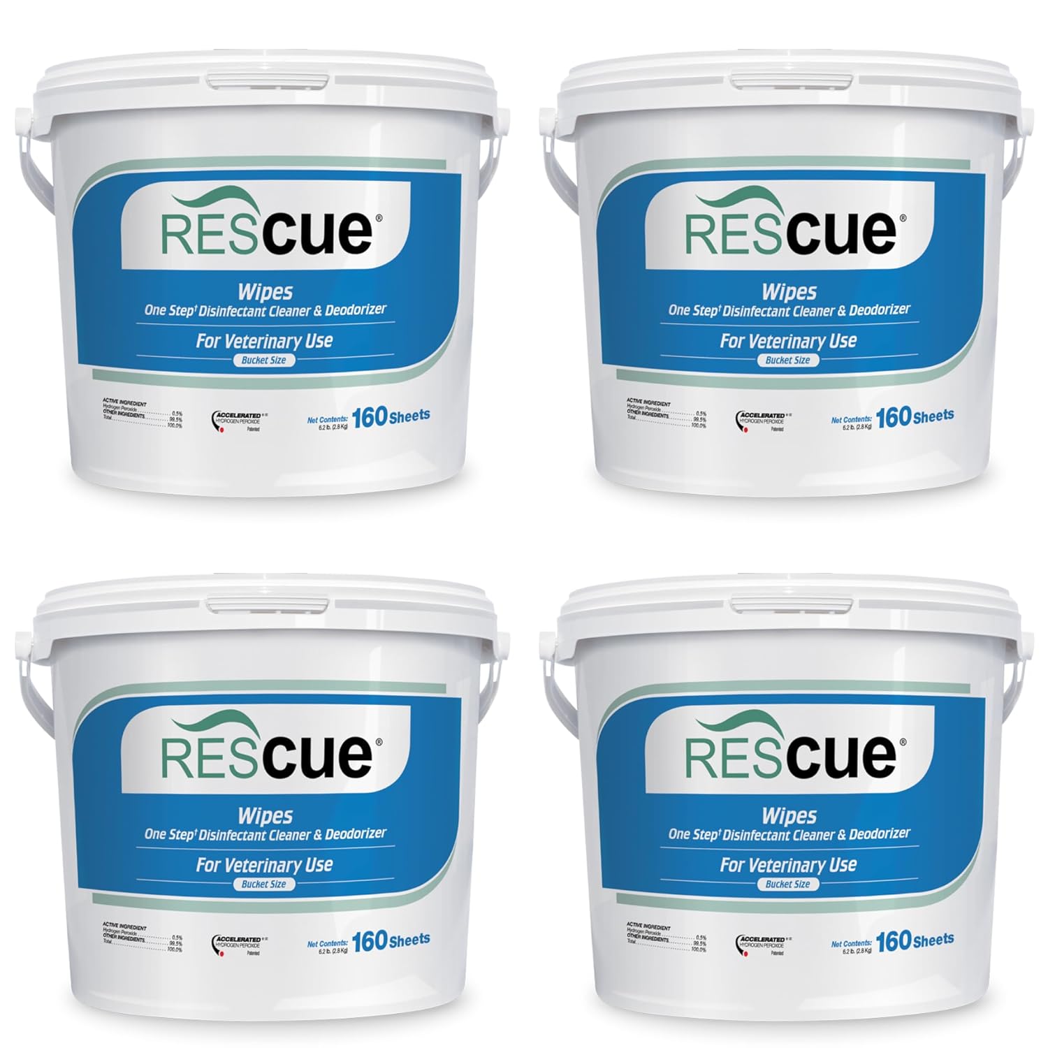 REScue One-Step Disinfectant Cleaner & Deodorizer Wipes for Vet Use – Cleaner for Kennels, Litter Boxes, Vet Offices, Pet Grooming Surfaces – Extra Large, 160-Count Wipes Bucket (4 Pack)