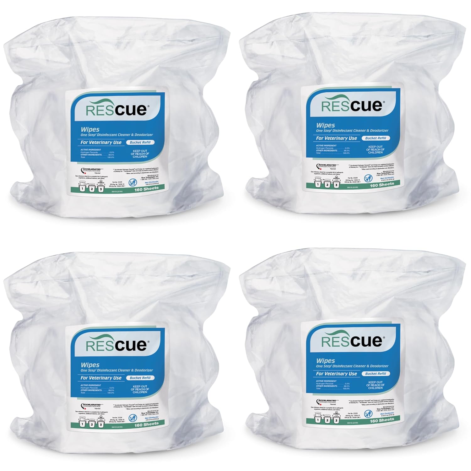 REScue One-Step Disinfectant Cleaner & Deodorizer Wipes for Vet Use – Cleaner for Kennels, Litter Boxes, Vet Offices, Pet Grooming Surfaces – Extra Large Wipes, 160-Count Bucket Refill (4 Pack)