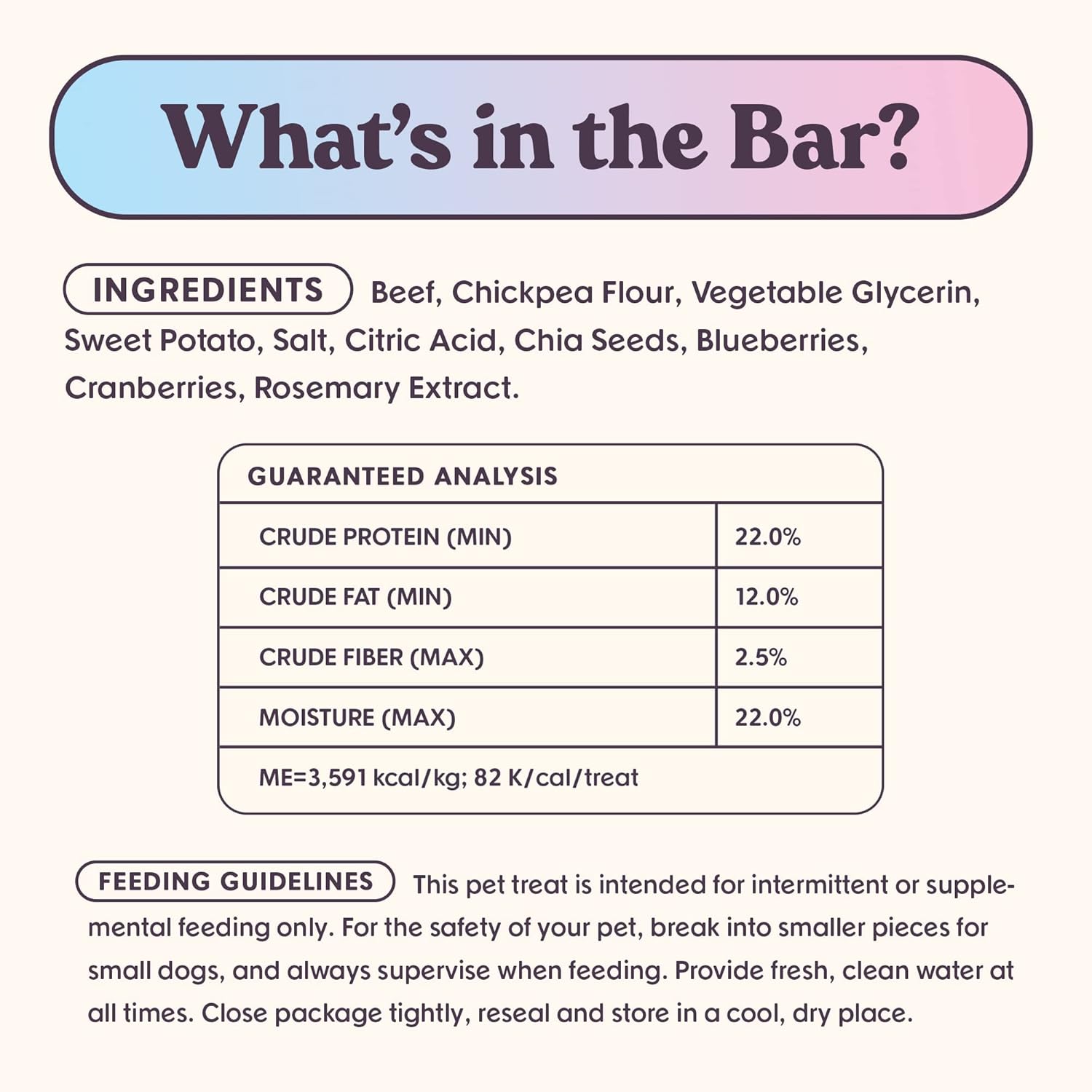 • NATURAL INGREDIENTS: These meaty training treats are perfect for dogs of all sizes and breeds, and contain plant-based superfoods like sweet potatoes, chia seeds, blueberries, and cranberries.
