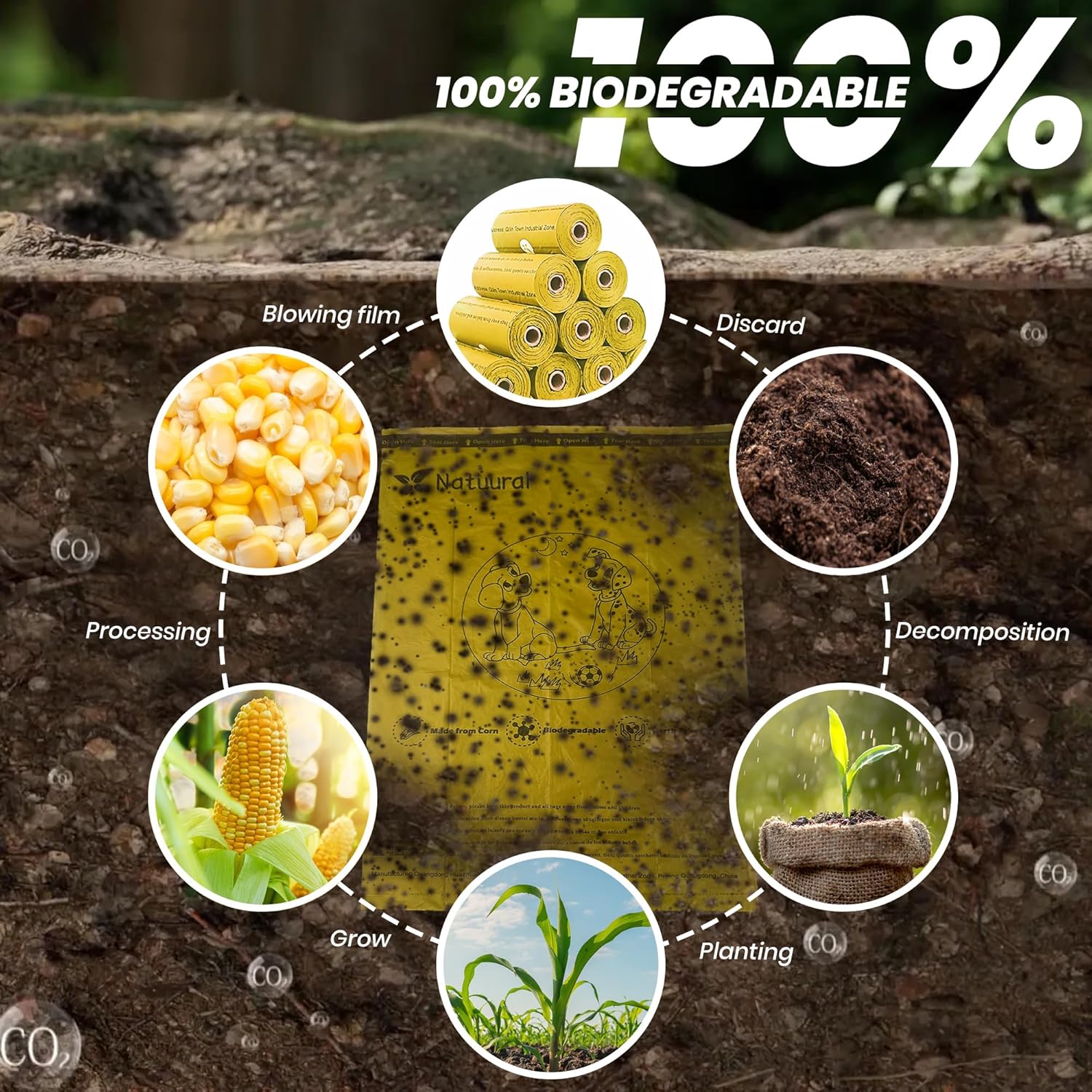 Dog Poop Bags Rolls-600 Counts, 40Rolls, Biodegradable Poop Bags Made of Cornstarch, 100% Leak Proof and Easy to Open (Yellow)