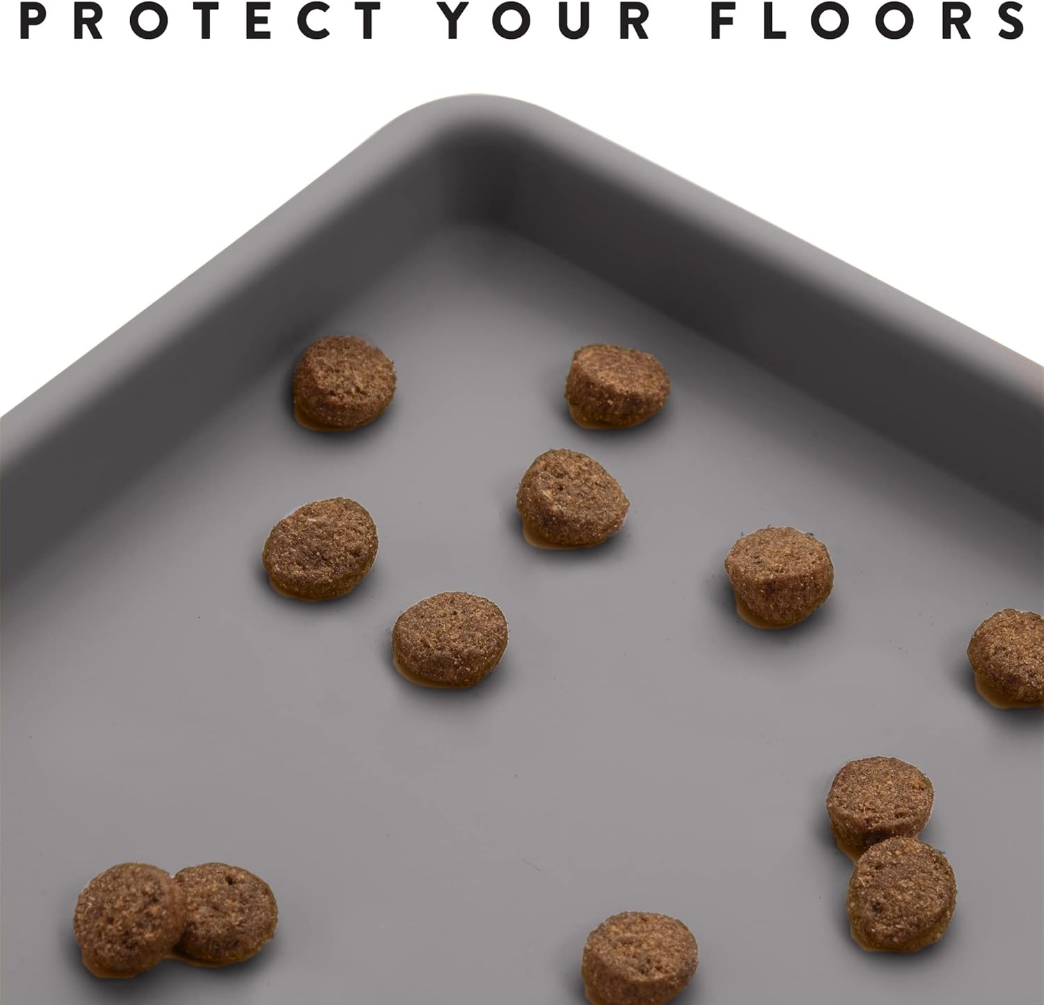 CatGuru Cat Food Mat, Small & Large Feeding Mats, 100% Waterproof Silicone Pet Placemat, Non-Slip Cat Food and Water Bowl or Water Fountain (Large, Carbon)