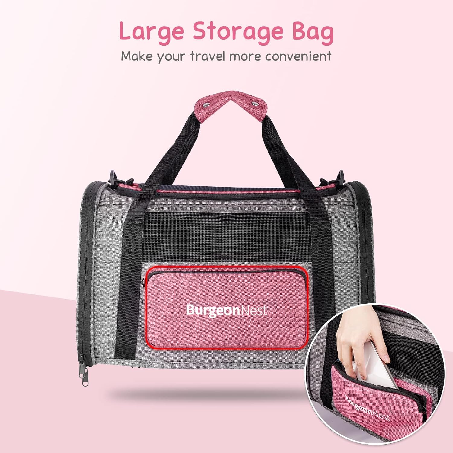 BurgeonNest Cat Carriers for Medium Puppy Under 25 lbs, Pet Carrier for Cats with Unique Side Bag,Top Load Small Pet Bag Soft-Sided Escape Proof with 4 Ventilated Windows