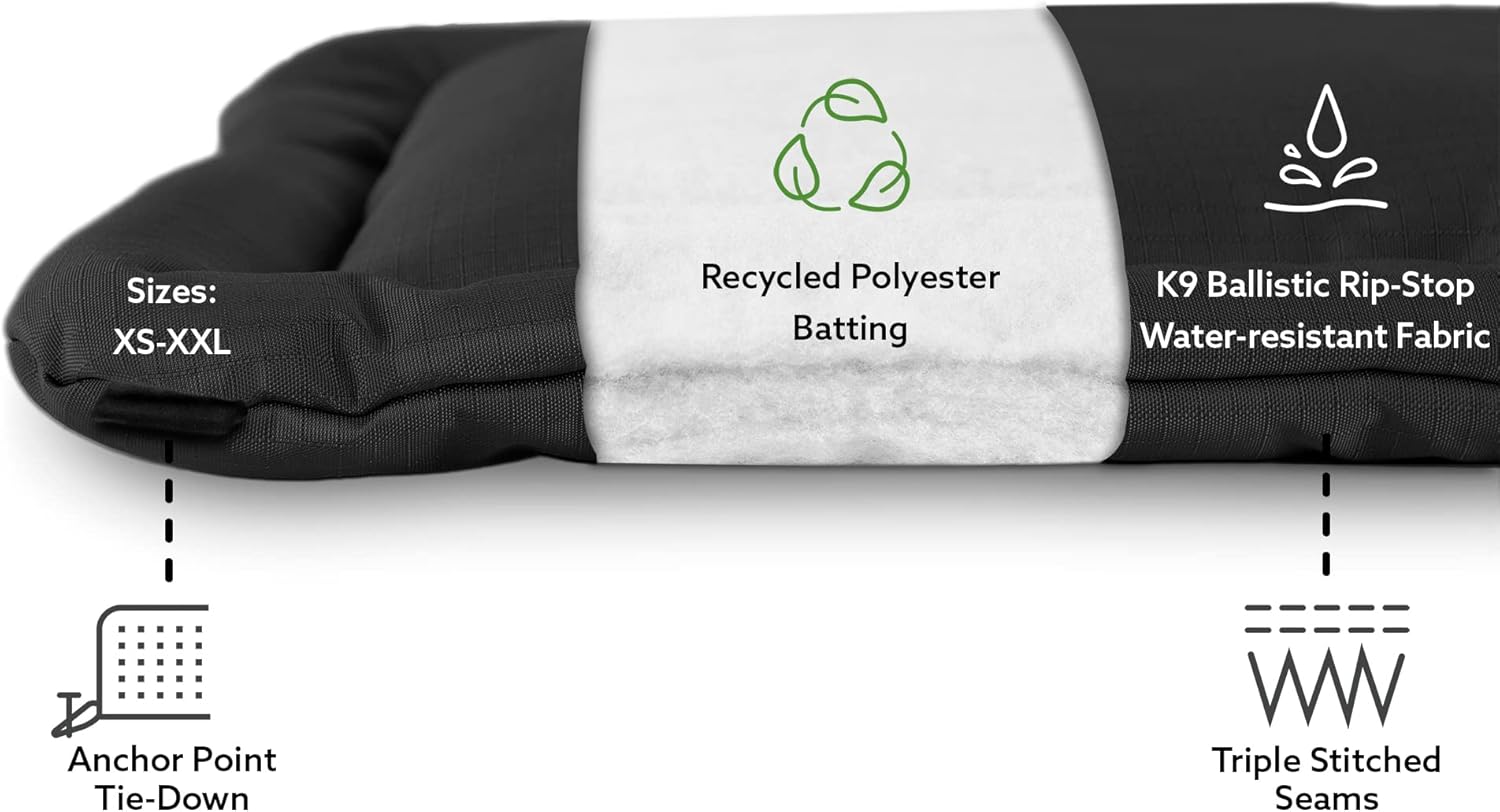 • Easy Clean: The ballistic material is fur, dirt, stain, and odor resistant. It can be spot-cleaned between uses with a damp towel, or you can machine wash it whole for a deeper cleaning.