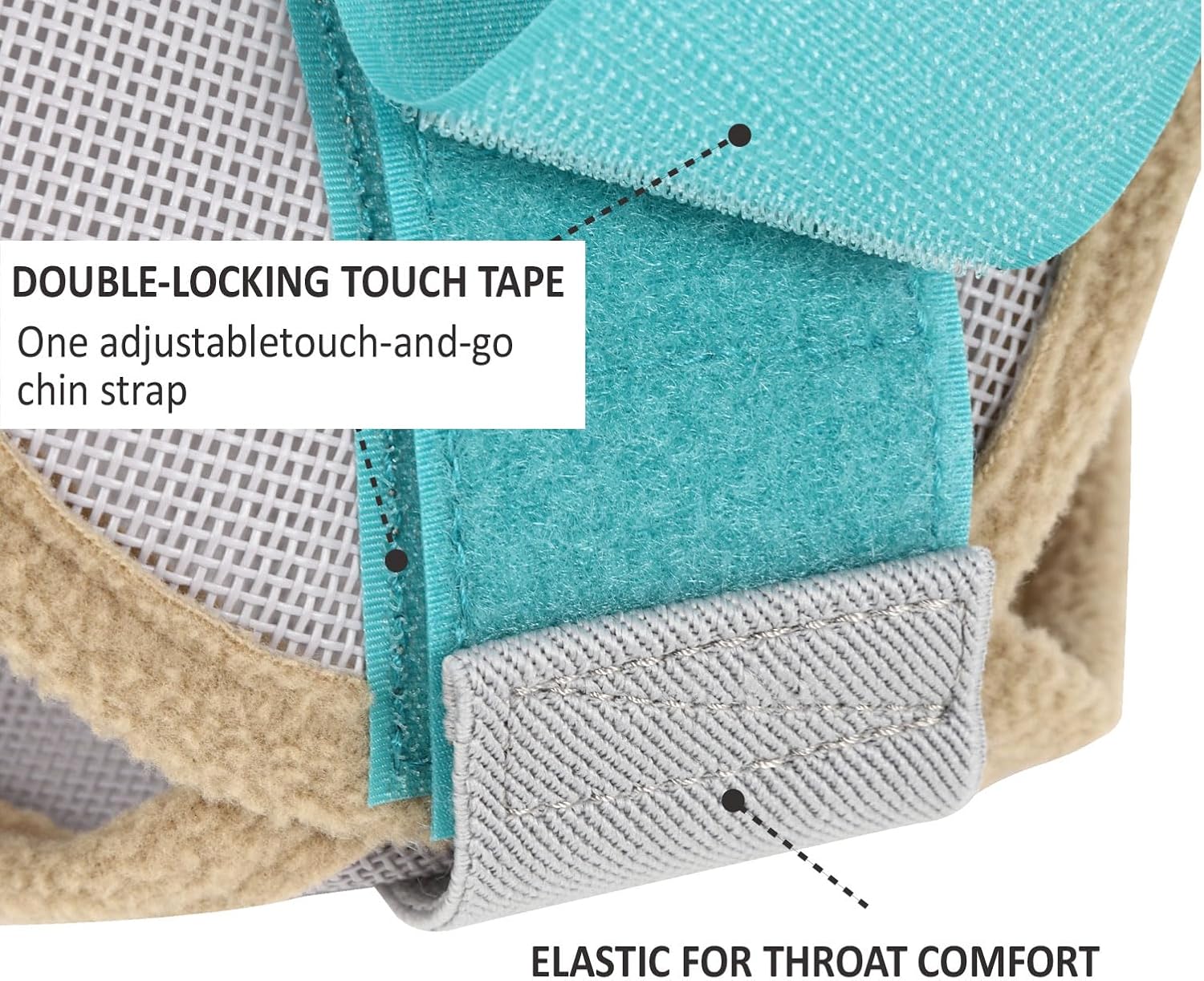 • Move Free And Feel Free. The fleece padding along the forehead and around the nose and throat prevents rubbing. The mask is lightweight, 0.31 lbs., and elastic for throat comfort. It also includes a dual-locking touch tape, secured with one adjustable touch-and-go chin strap under the jaw.