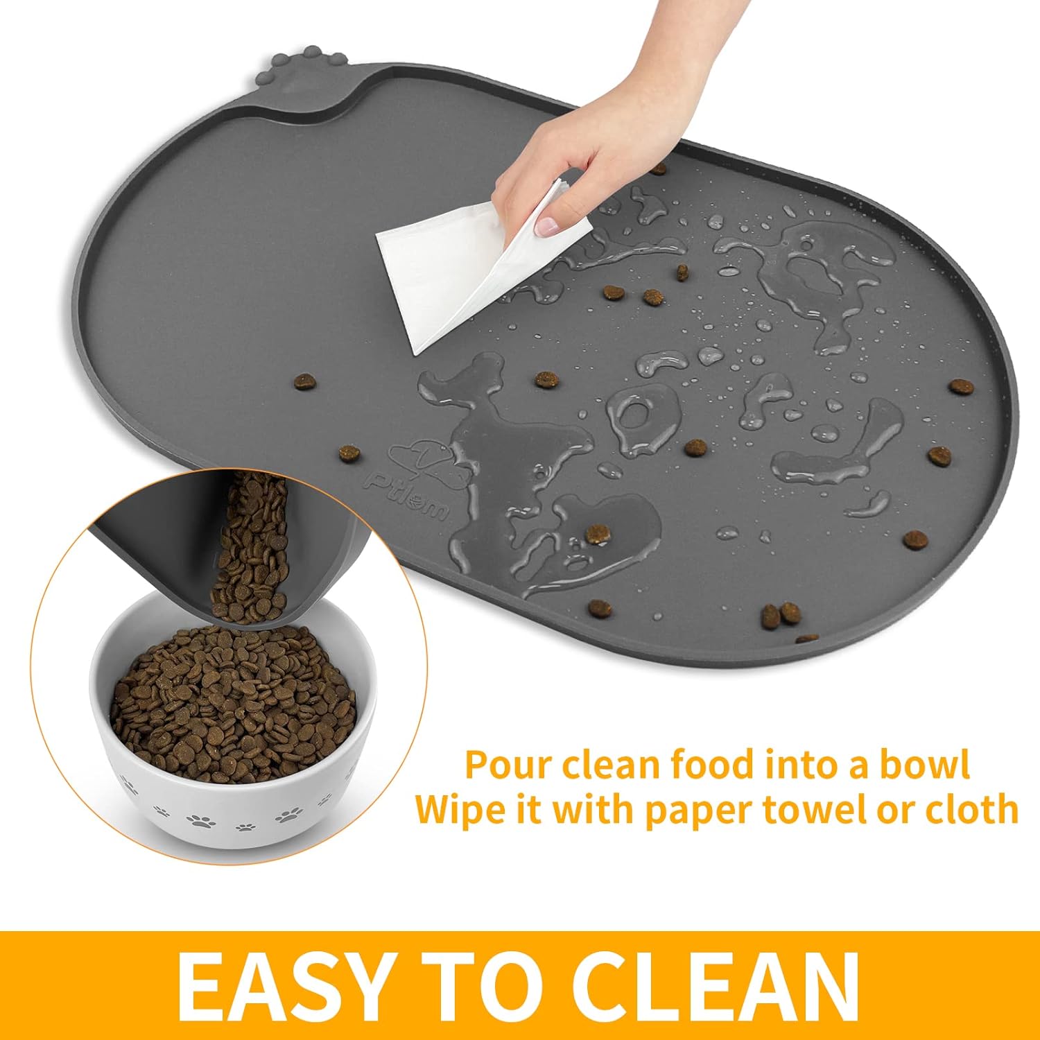 • 100% Waterproof and Anti-Slip: Our dog bowl mat with high-lip edges. Leak-proof pet placemats can prevent food and water overflow, and protect the floor. Prevent pets from eating contaminated food. Non-slip silicone mat keeps the bowl in place.