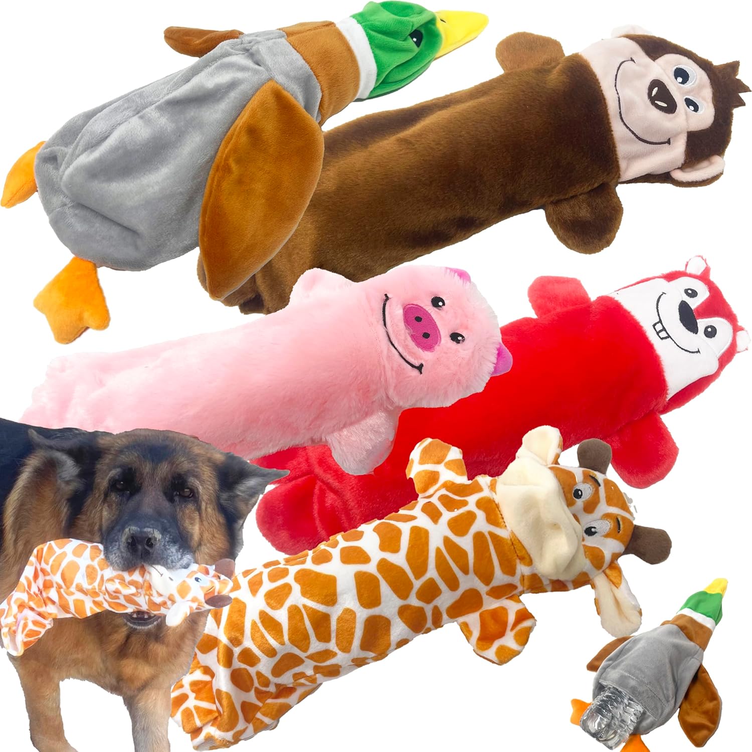 • SUPER VALUE &GREAT FUN: Includes 5 Stuffingless Animal Dog Toy. Each has an openning to place a plastic bottle inside for dogs who love chewing bottles or just some added fun.