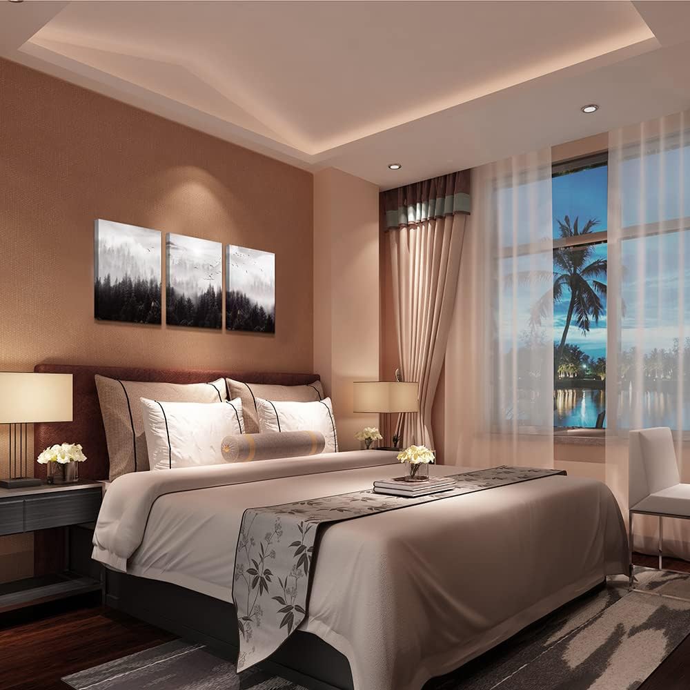 • WALL ART SIZE :Each Canvas Panel Is 12"X16"Inch (30cmx40cm), Total 3 Panels.3 Piece Set Foggy Forest Trees Scenery Wall Paintings Canvas Wall Art For Living Room Framed Wall Decor For Bedroom Room Wall Pictures Artwork Farmhouse Wall Decorations For Office Home Decoration