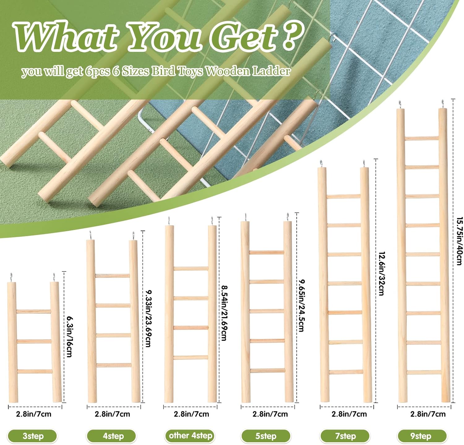 • Package Listing: you will get 6 different sizes of wooden parrots ladders, sufficient quantity and variety of sizes to meet your pet's needs