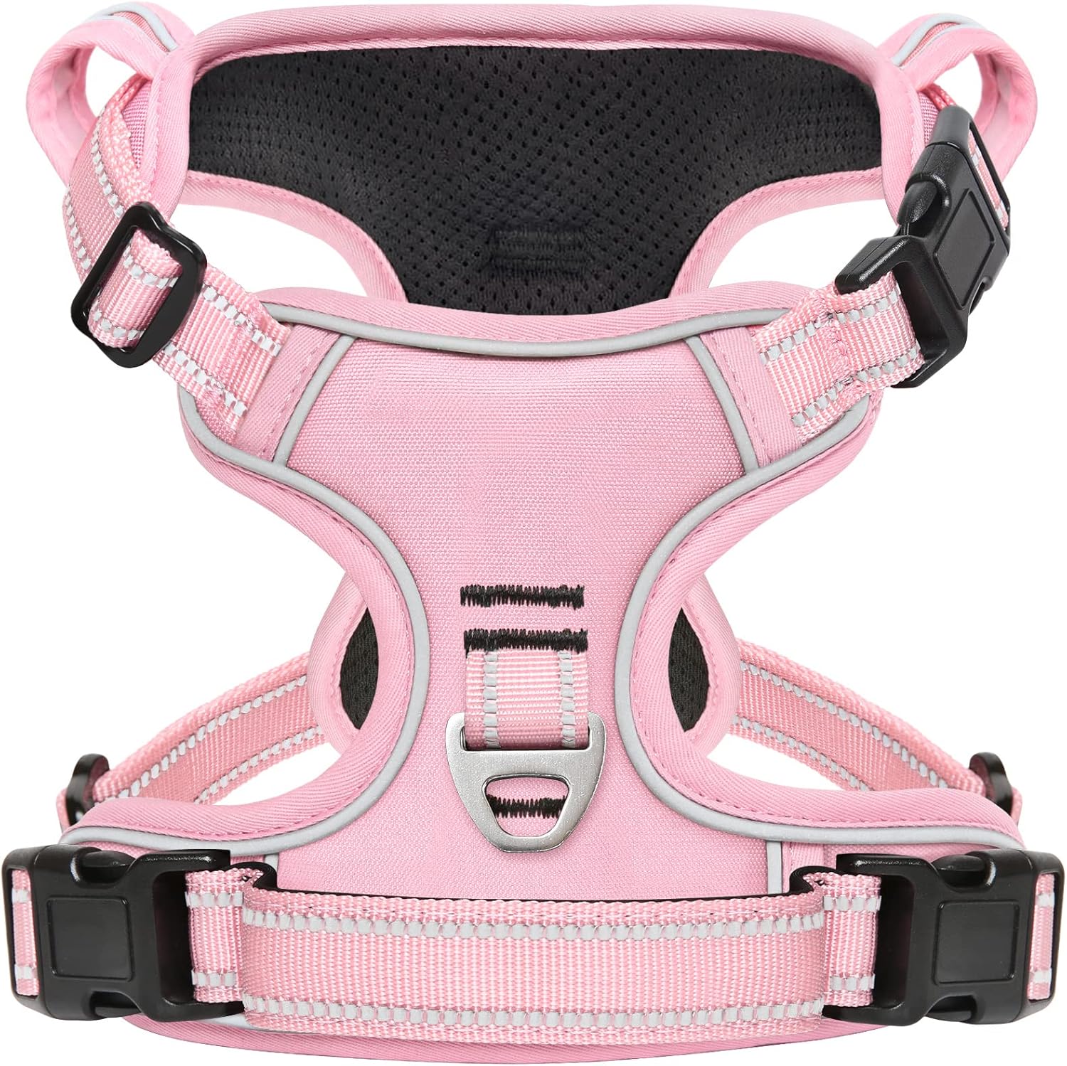 Timos Dog Harness, 3 Snap Buckles No-Pull Soft Padded Dog Vest with 2 Metal Leash Clips, Adjustable Reflective No Choke Pet Harness with Easy Control Handle for Small Dogs,Pale Pink,S