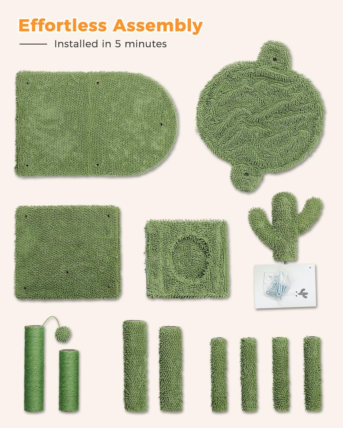 • Quality Construction: The MUTTROS Cactus Cat Tree is built to last, with sturdy materials and expert craftsmanship. It can accommodate multiple cats and is designed to withstand even the most active play. Easy Assembly: Setting up your cat's new playground is a breeze. The clear instructions and included tools make assembly quick and hassle-free.