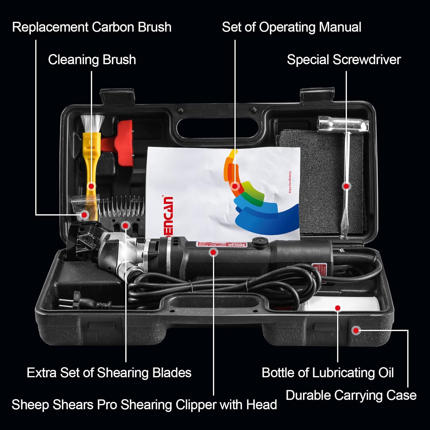 • 【PROFESSIONAL SHEEP SHEARS】: SENCAN sheep shear, a power of 750W and provides up to 2400r/min with comfortable grip protection to improve efficiency, this electric clippers makes your job of shearing much more easily and effectively.