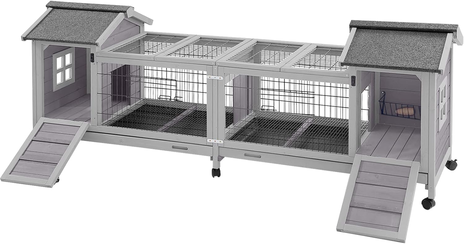 • 10.4 ft² Spacious Living Area: Rabbit hutch with two sleeping house and run, 80.12" from end to end, provides a far and long distance to hop