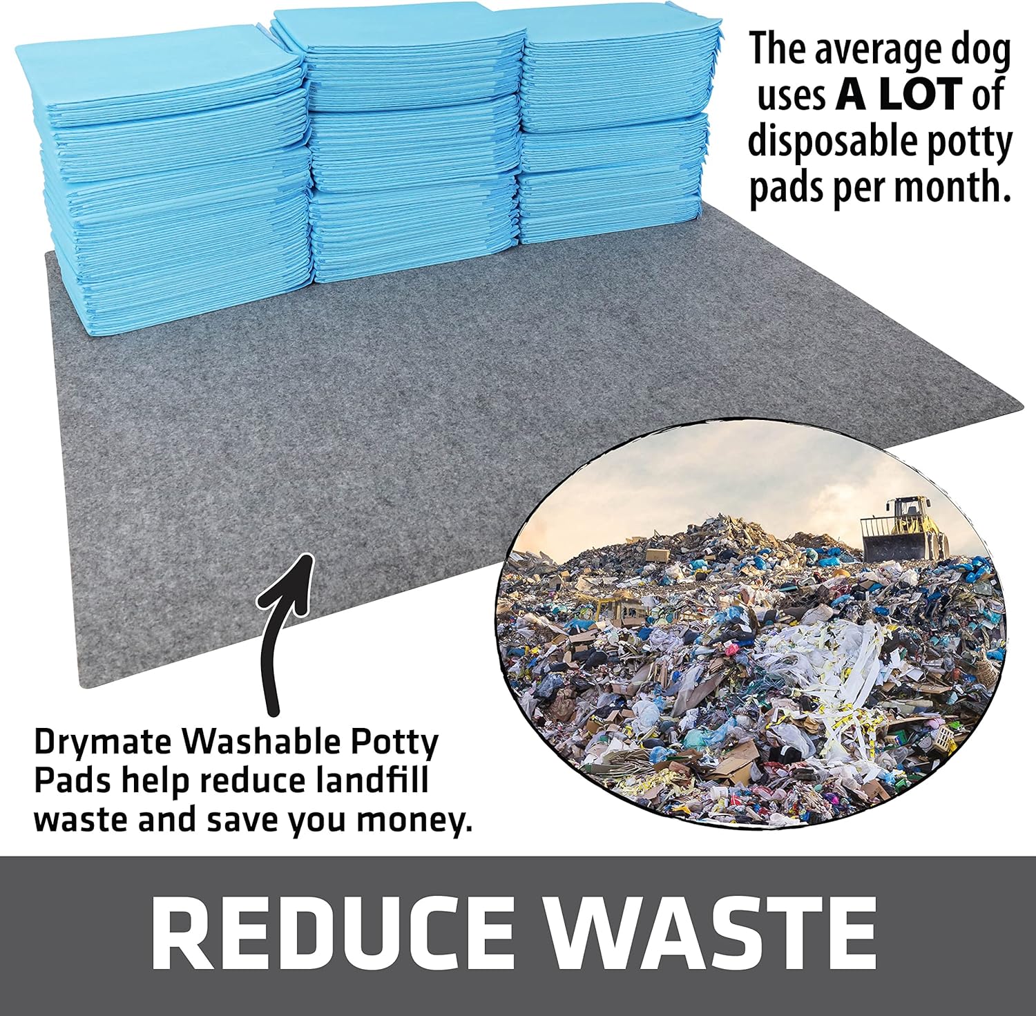 • HELP REDUCE LANDFILL WASTE & SAVE MONEY: Drymate Washable & Reusable Potty Pads provide an environmentally-friendly solution for dog potty training by eliminating the need for disposable pads, helping to reduce landfill waste and save you $$$. CONTAINS ACCIDENTS & PROTECTS SURFACES: Our potty pads quickly absorb urine and protect floors from potty training accidents in and around the home.