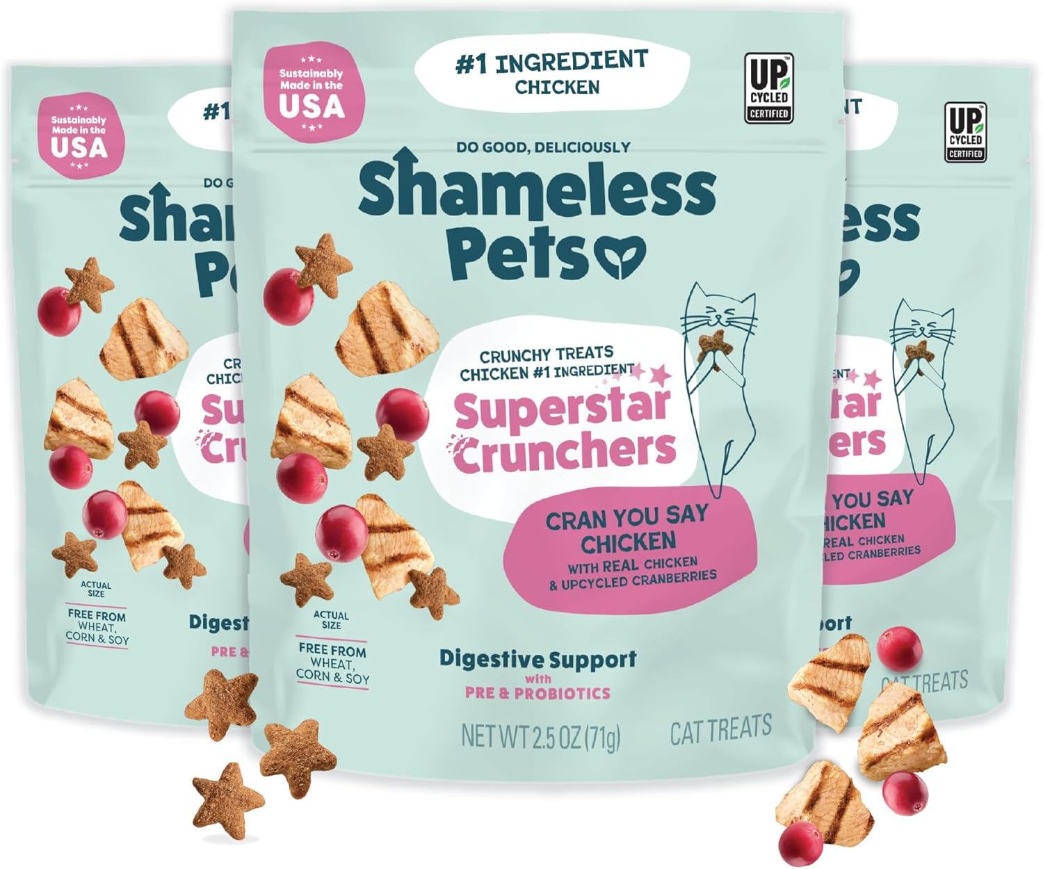 Shameless Pets Crunchy Cat Treats - Kitty Treats for Cats with Digestive Support, Natural Kitten Treats with Real Chicken, Healthy Flavored Feline Snacks - Cran You Say Chicken, 3-Pk